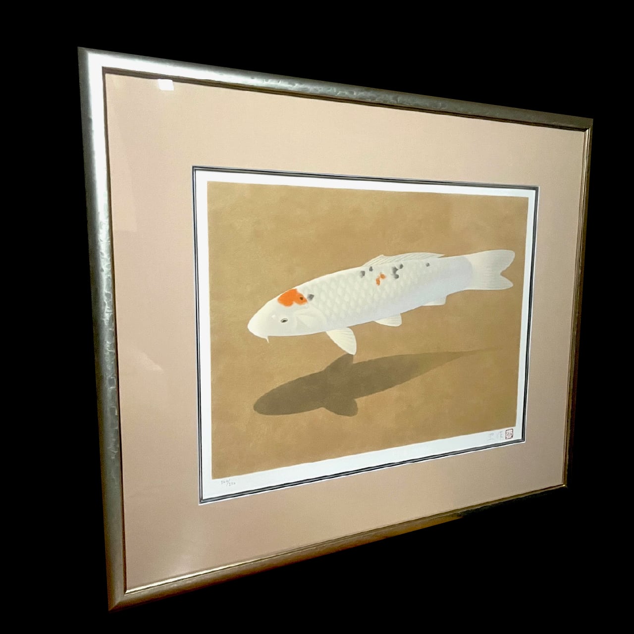 大山忠作 によるリトグラフ作品「遊鯉」。