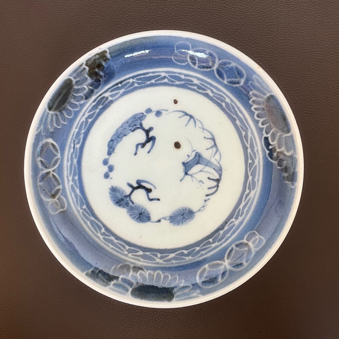 【選べる一枚】古伊万里 染付 白抜宝尽松竹梅文様 七寸皿 江戸後期 no-き