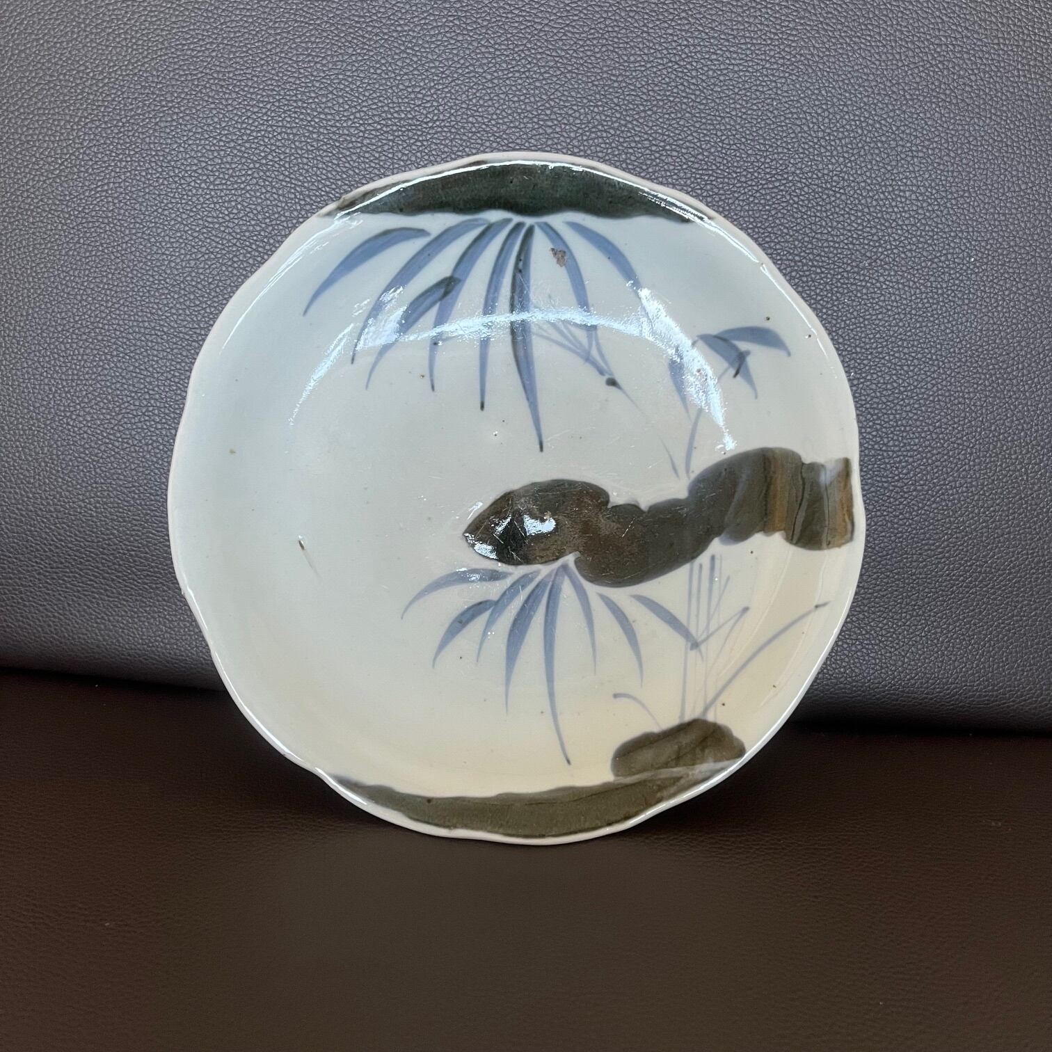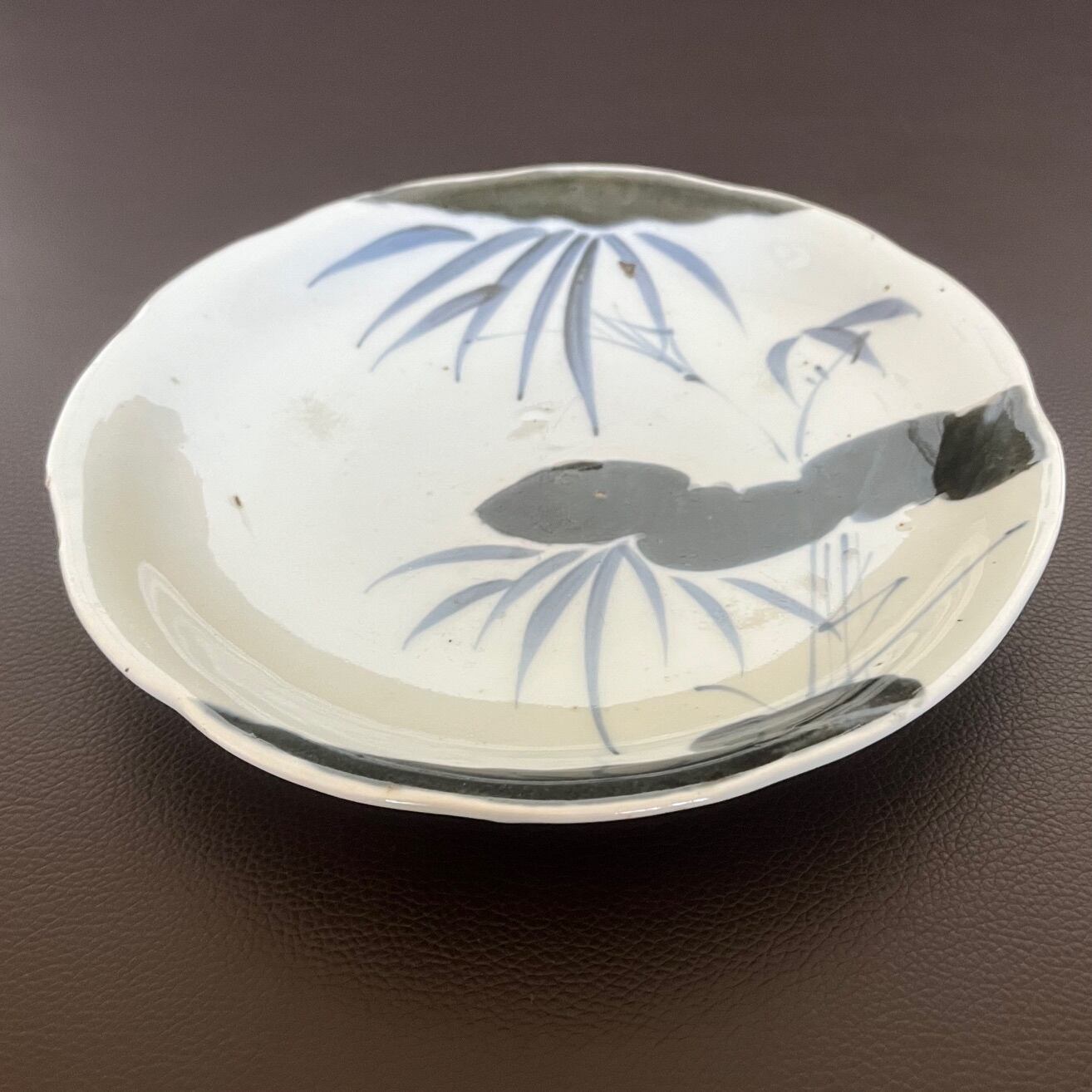 江戸中期 古伊万里 染付竹節文 七寸皿(修理済)— 静けさをまとう一枚 no-d