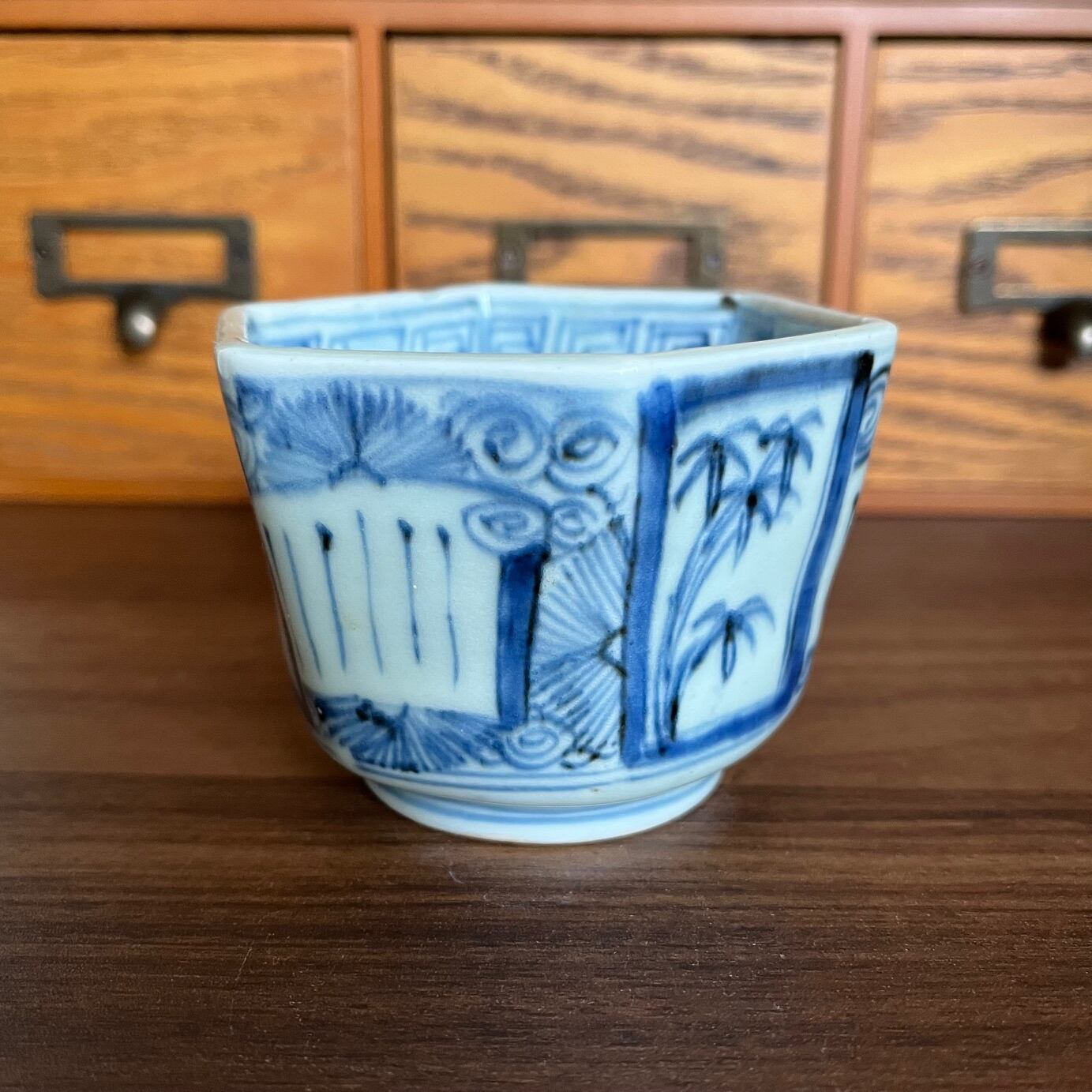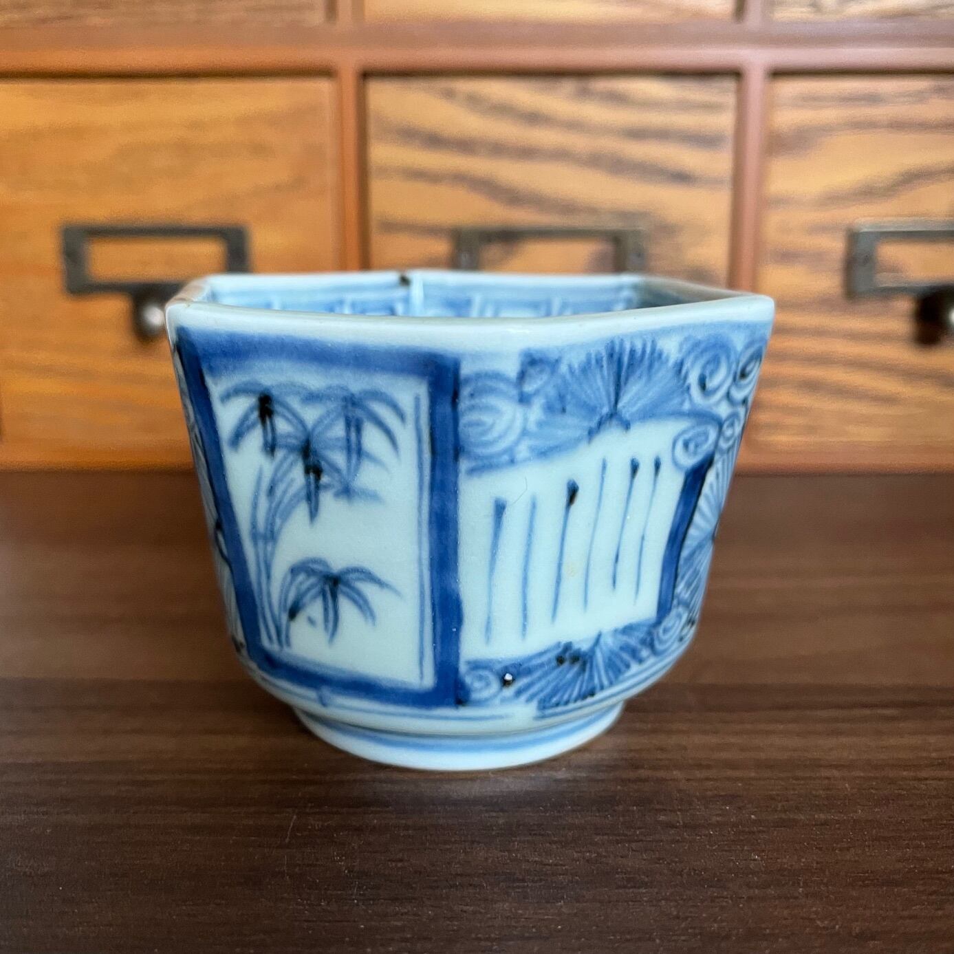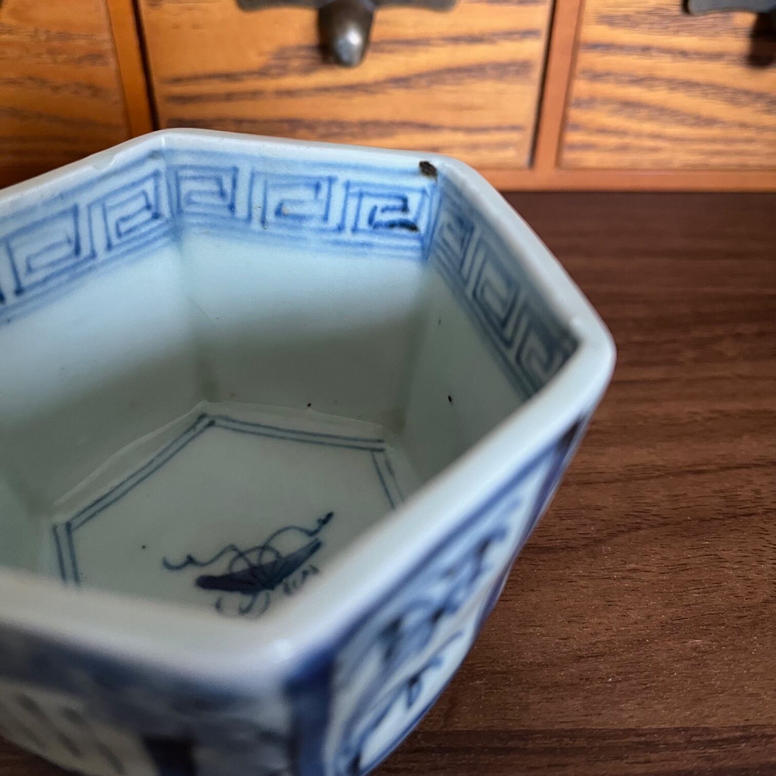 初期伊万里に近い時代の古伊万里染付六角向付。