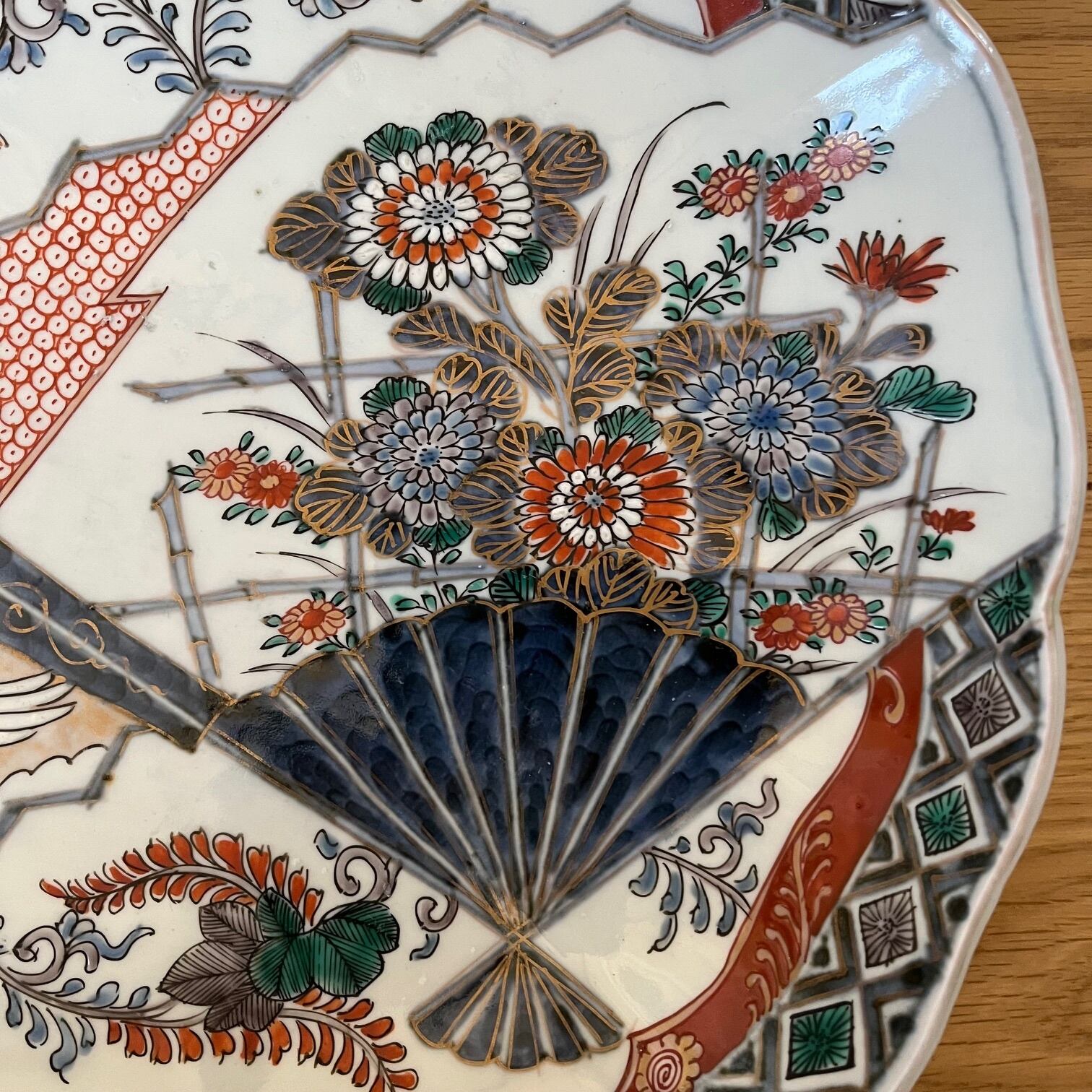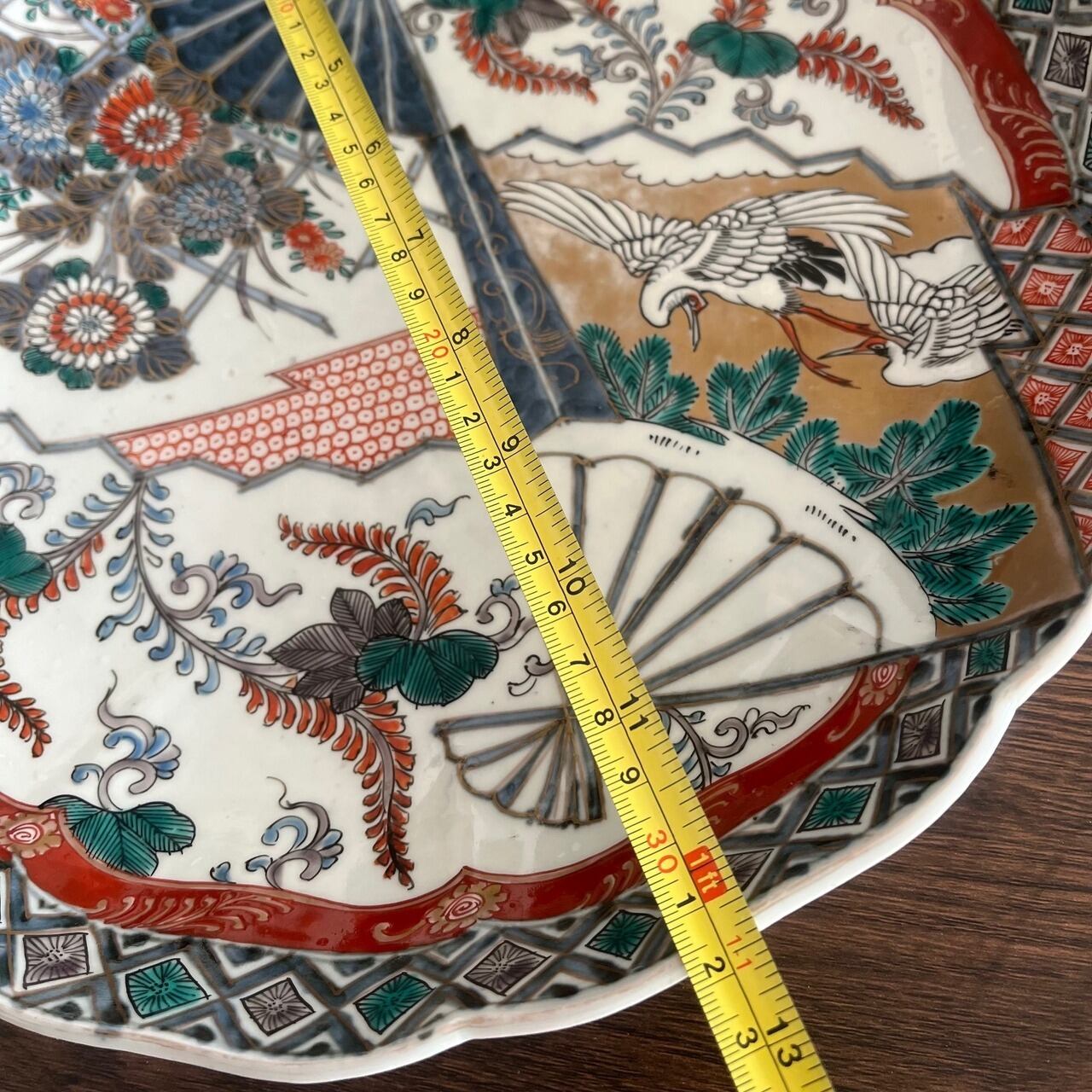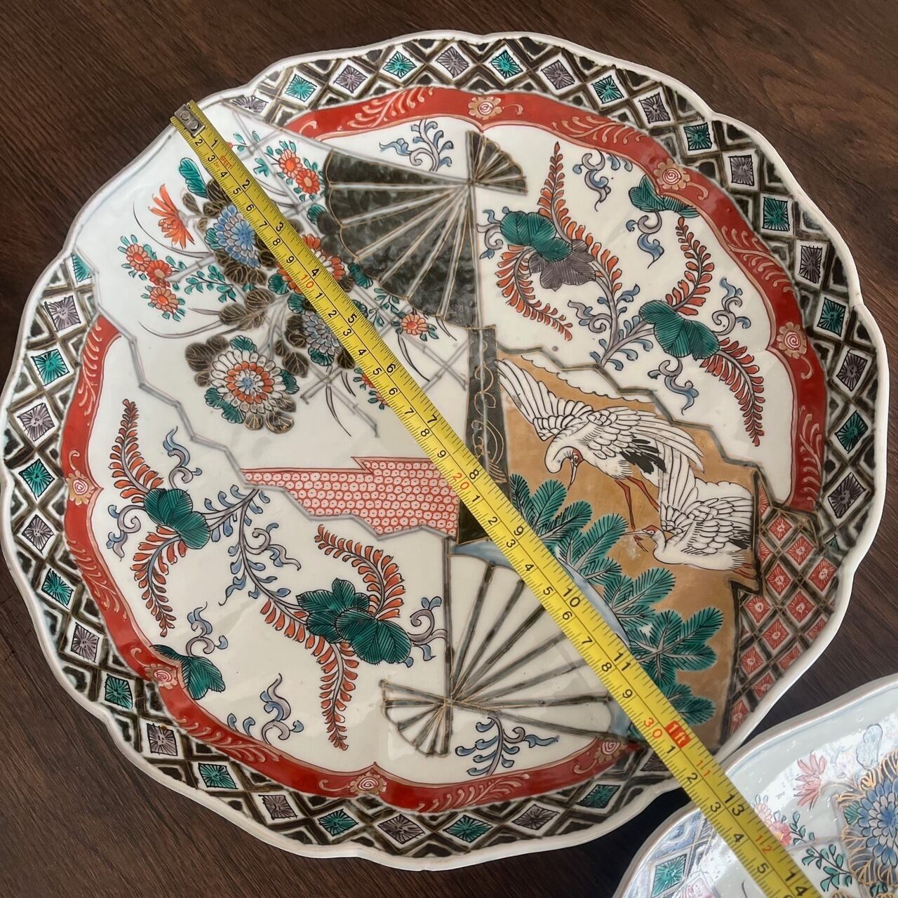 古伊万里赤絵鶴扇子若松桐菊紋様大皿(対のうちの一枚)B