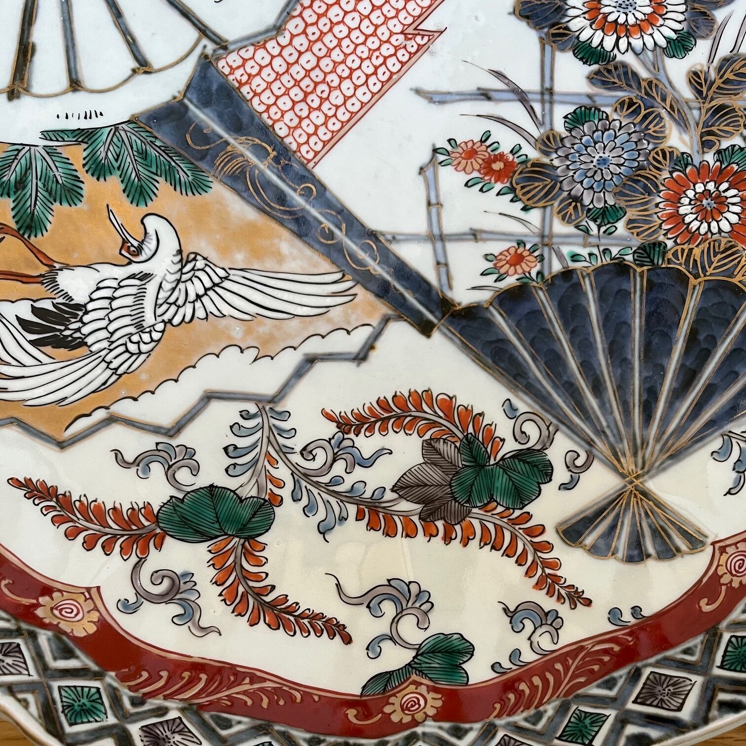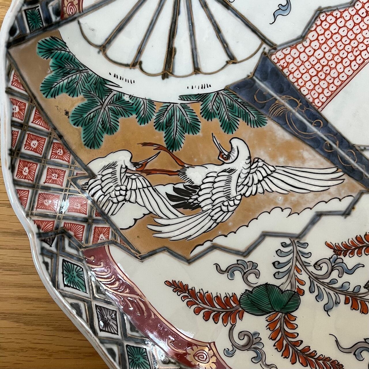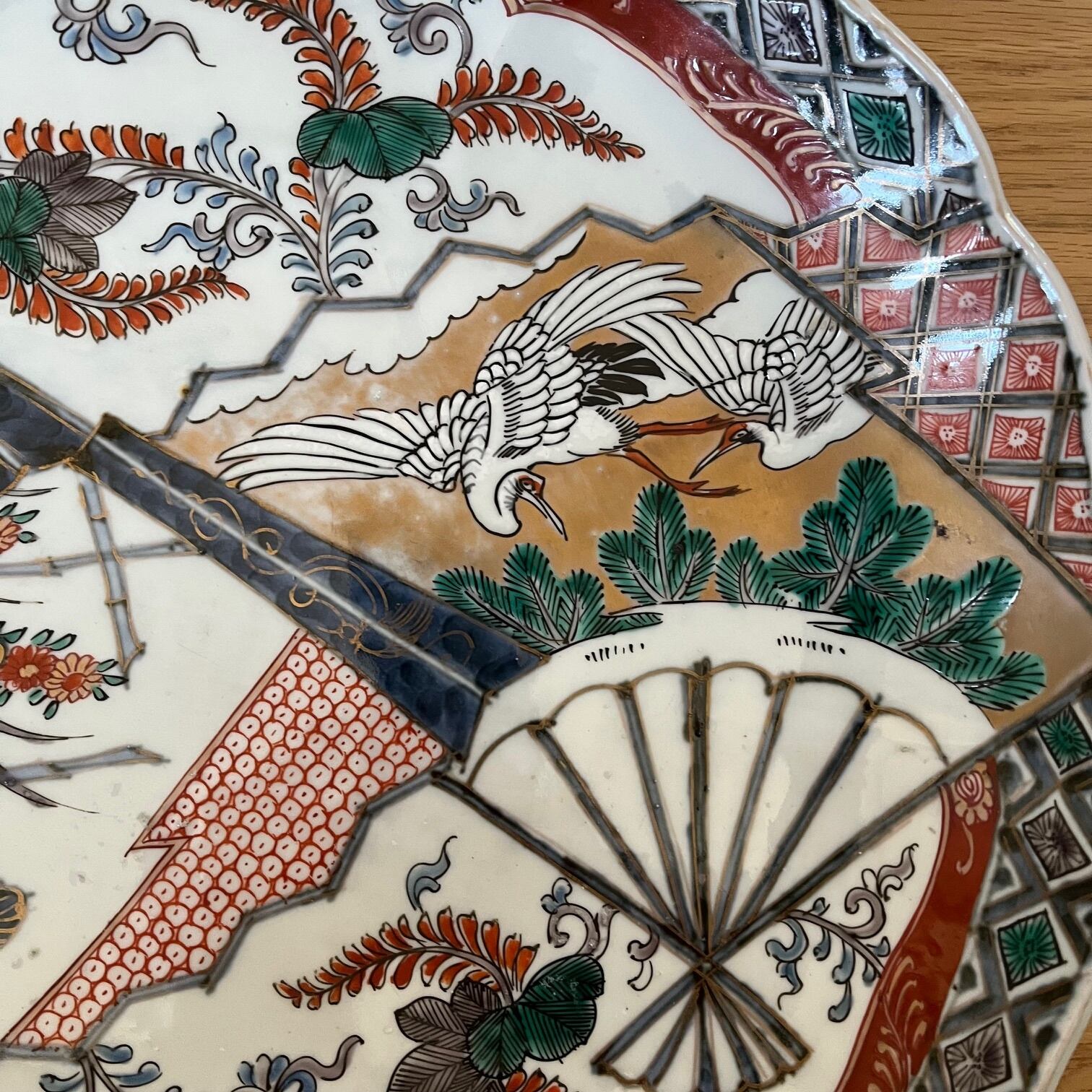 古伊万里赤絵鶴扇子若松桐菊紋様大皿(対のうちの一枚)B