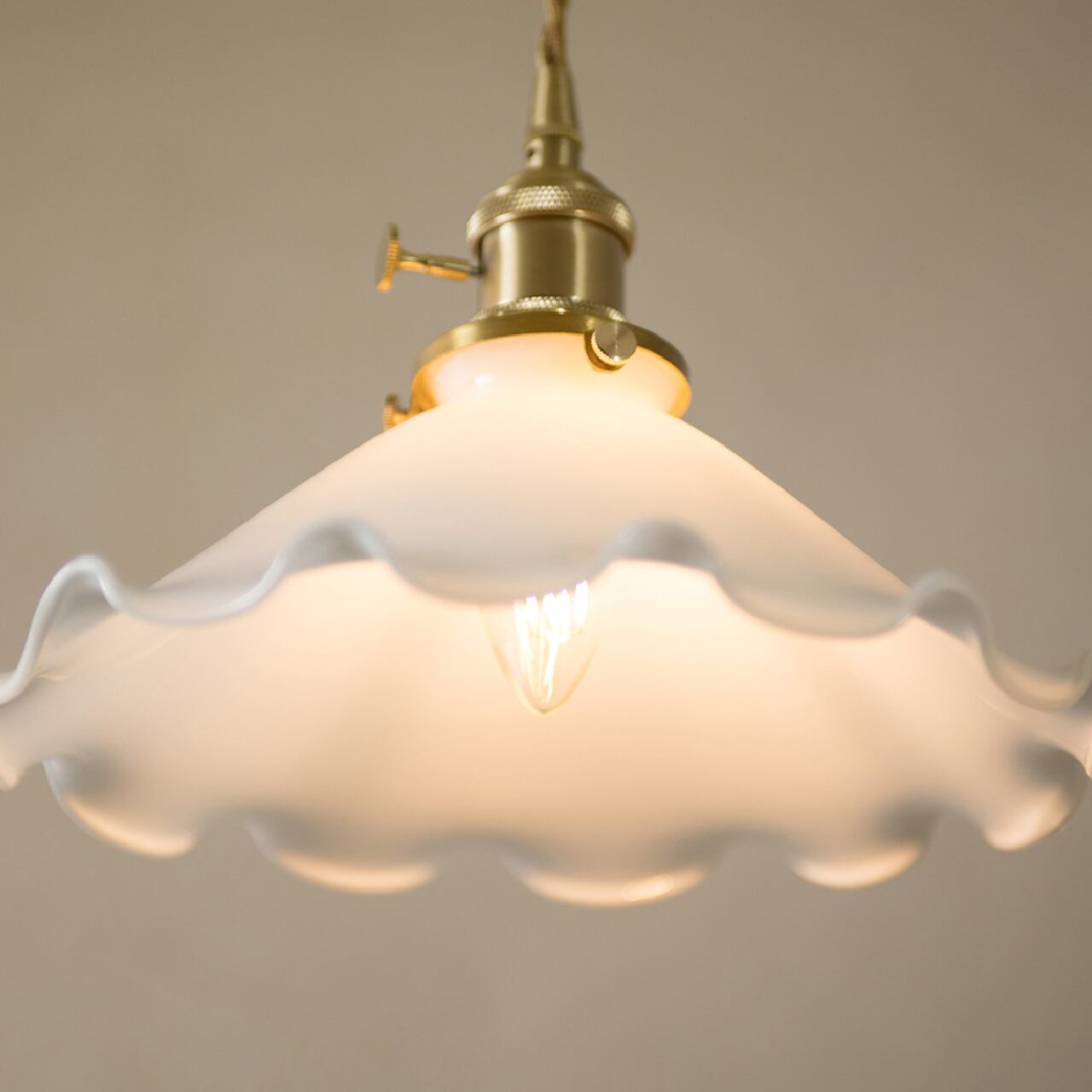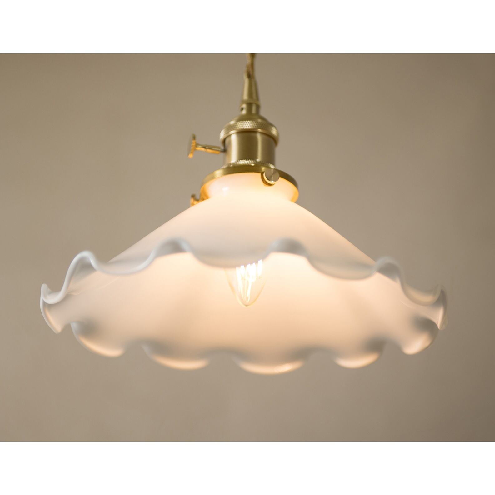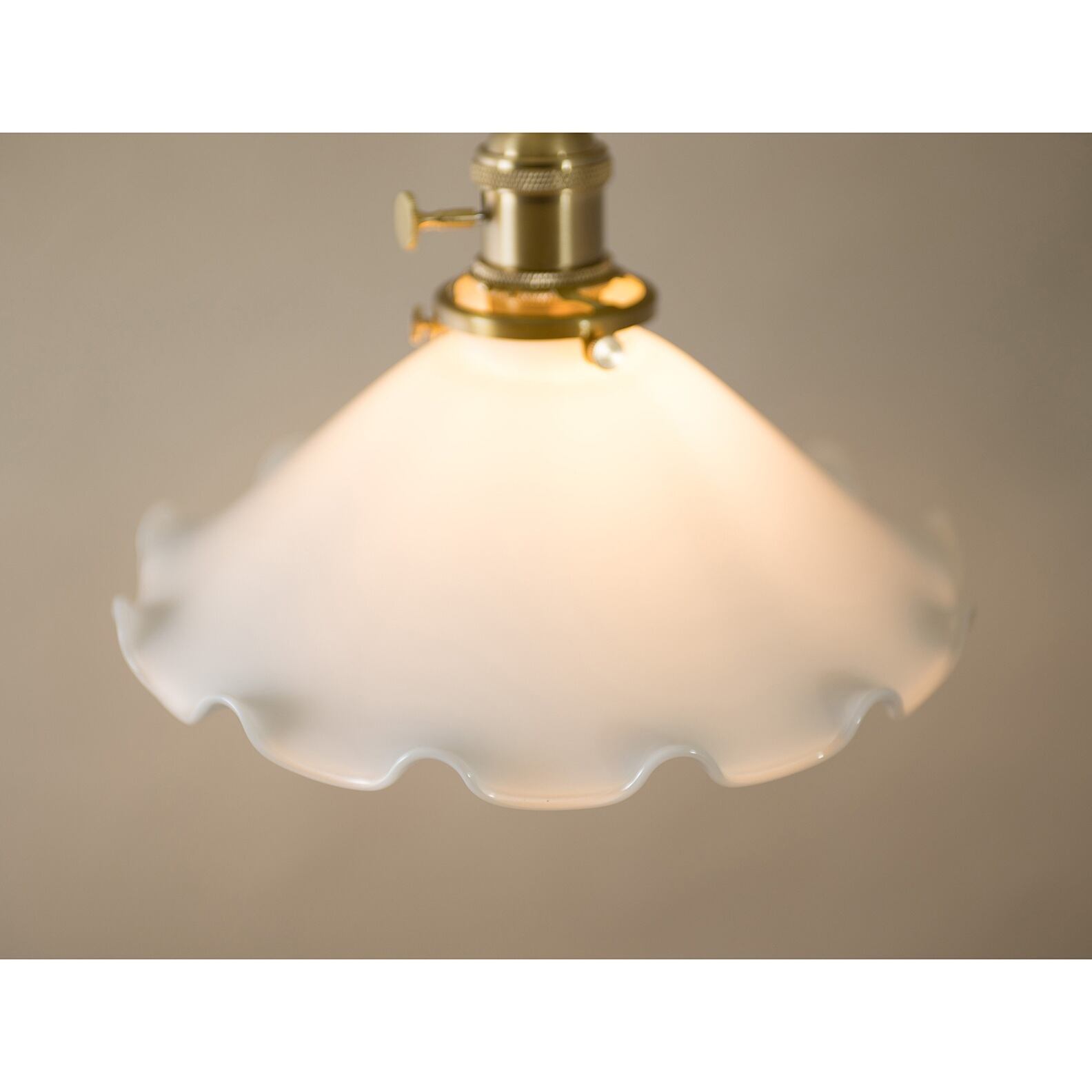 花びらのように広がるミルクガラスシェードが、空間にやさしい存在感を添えるペンダントランプ。