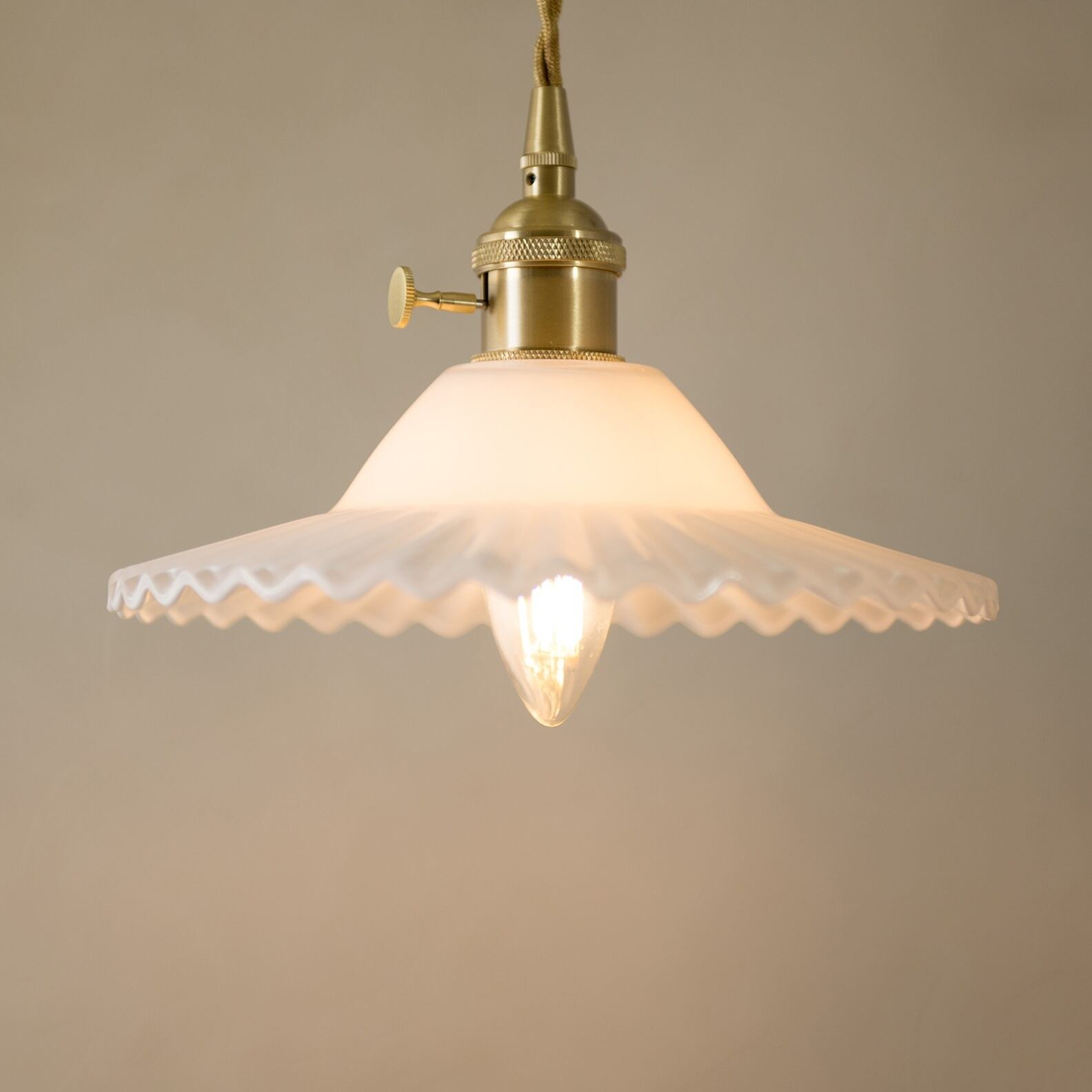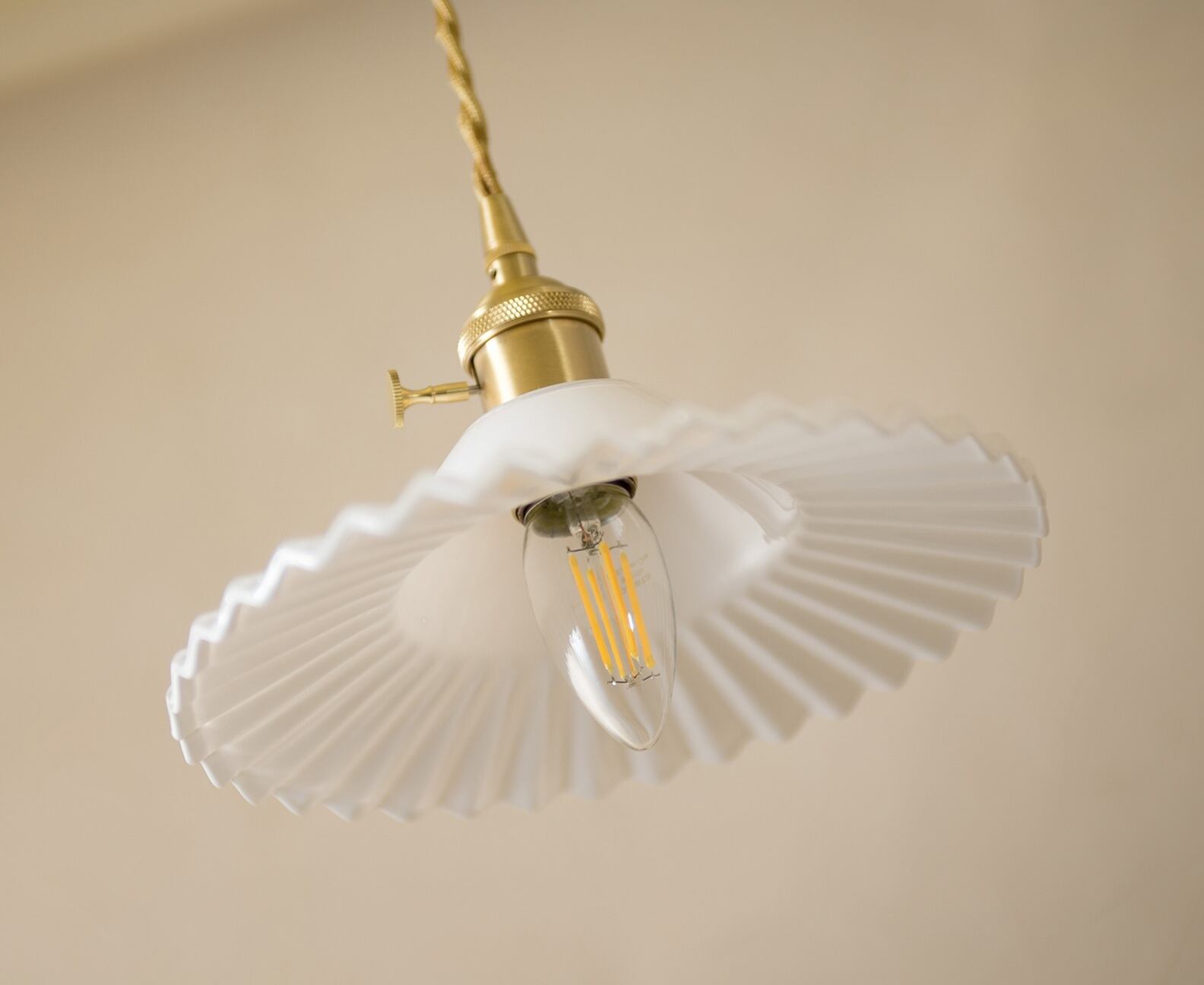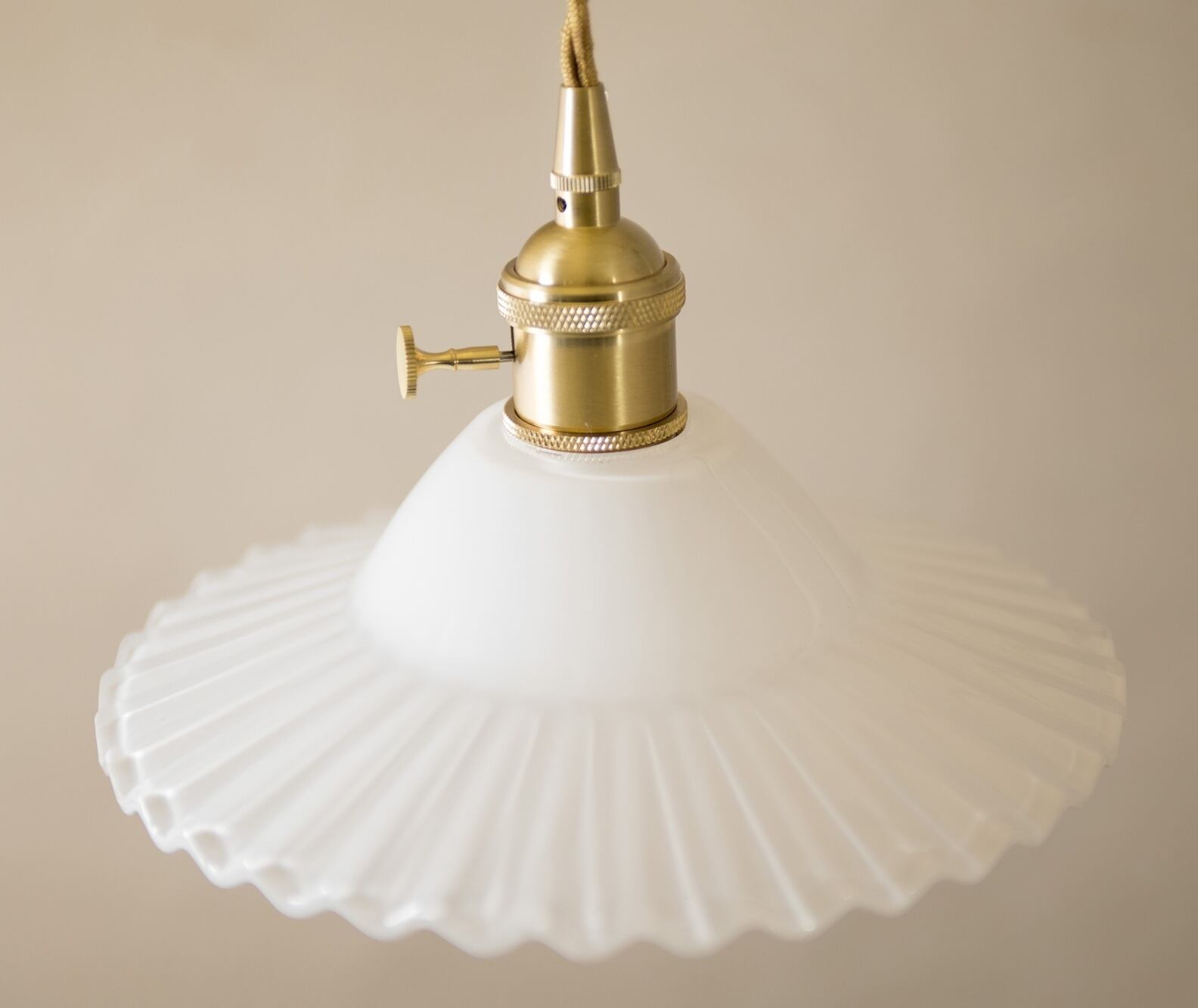 花びらのように広がるミルクガラスシェードが、空間にやさしくなじむペンダントランプ。