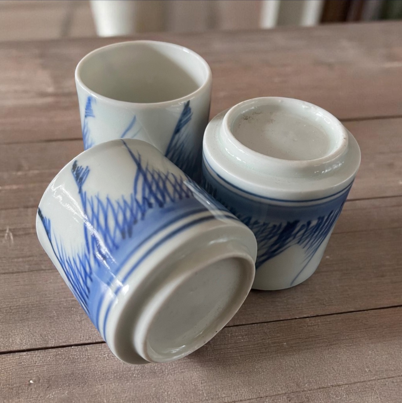 古伊万里染付ススキ文様猪口 3客セット