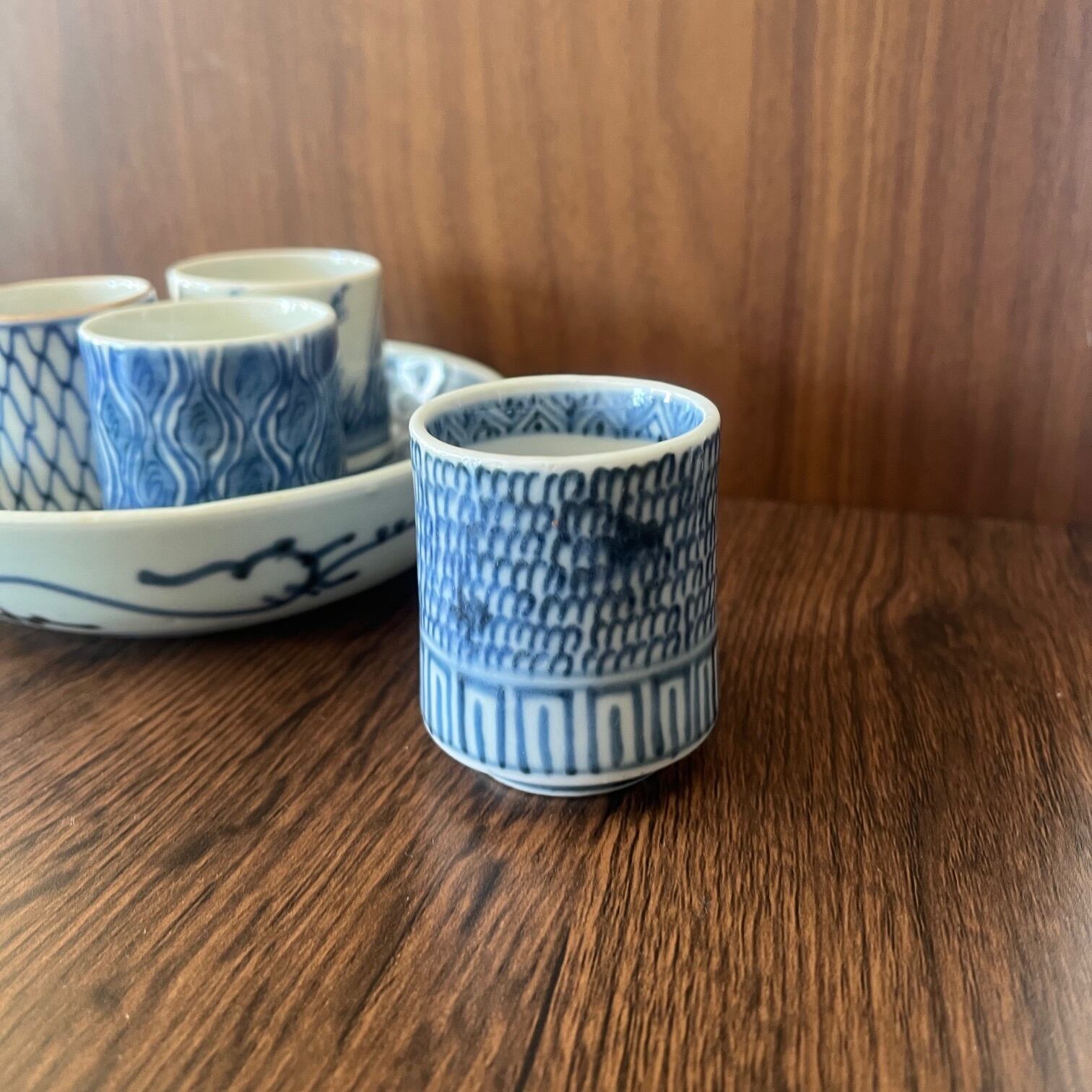 伊万里染付微塵花唐草文様猪口1客 a
