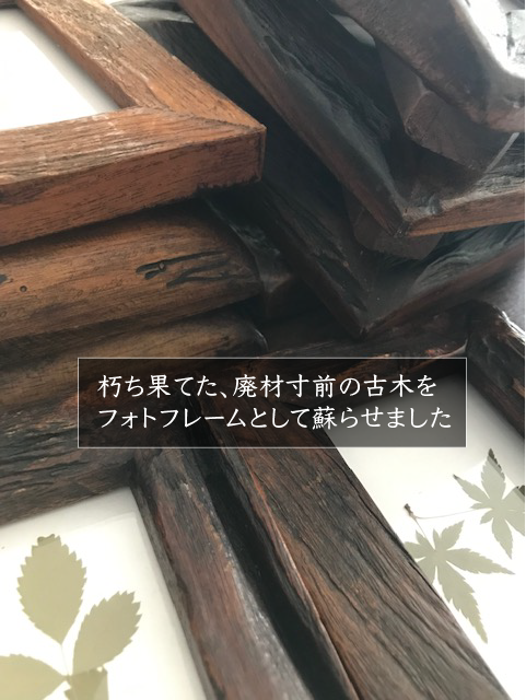 朽ち果てた、廃材寸前の古木をフォトフレームとして蘇らせました。