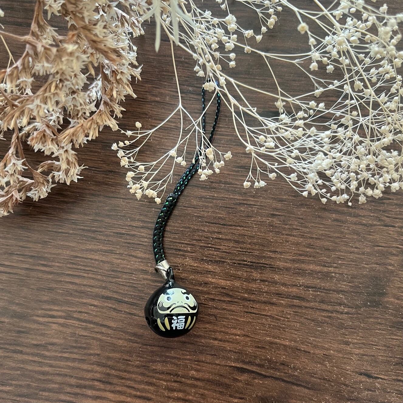 <黒>必勝達磨 だるま 鈴根付ストラップ