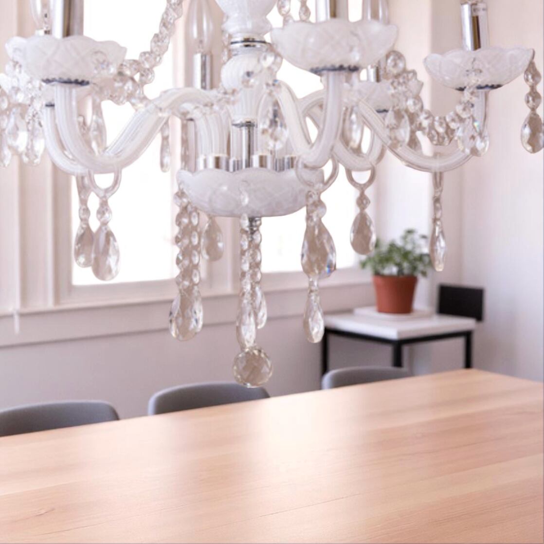本体・アーム部分のガラスが白色のシャンデリアはとてもめずらしいです。