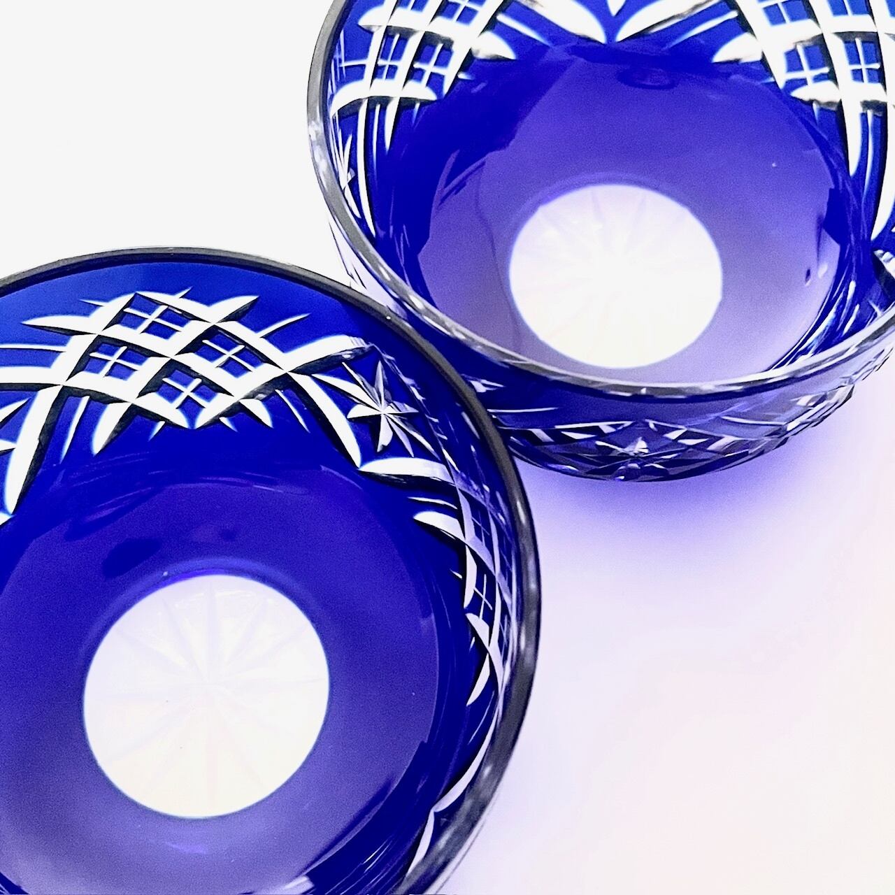 ぽってり かわいい 切子 硝子 濃紺 青 小鉢 向付 2客
