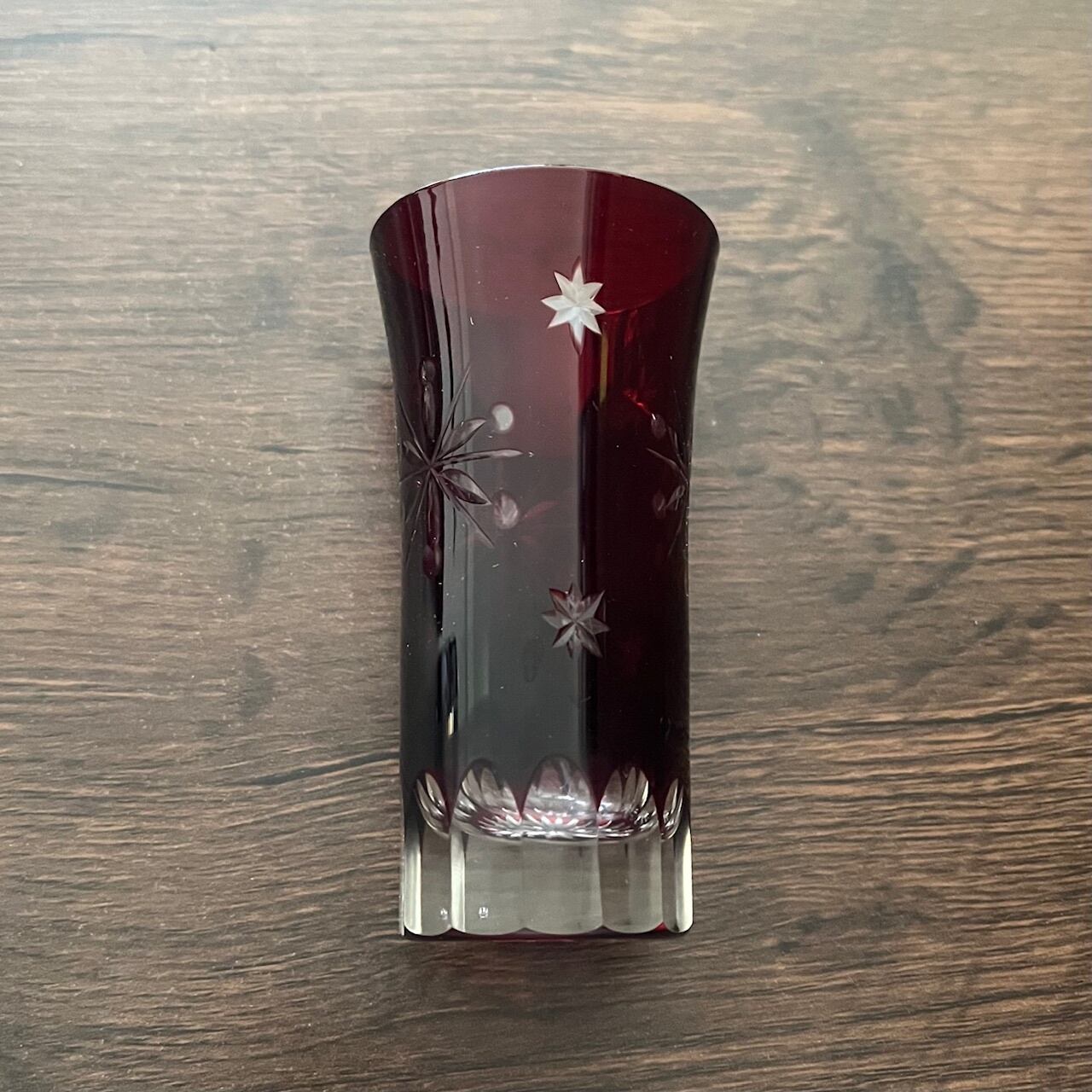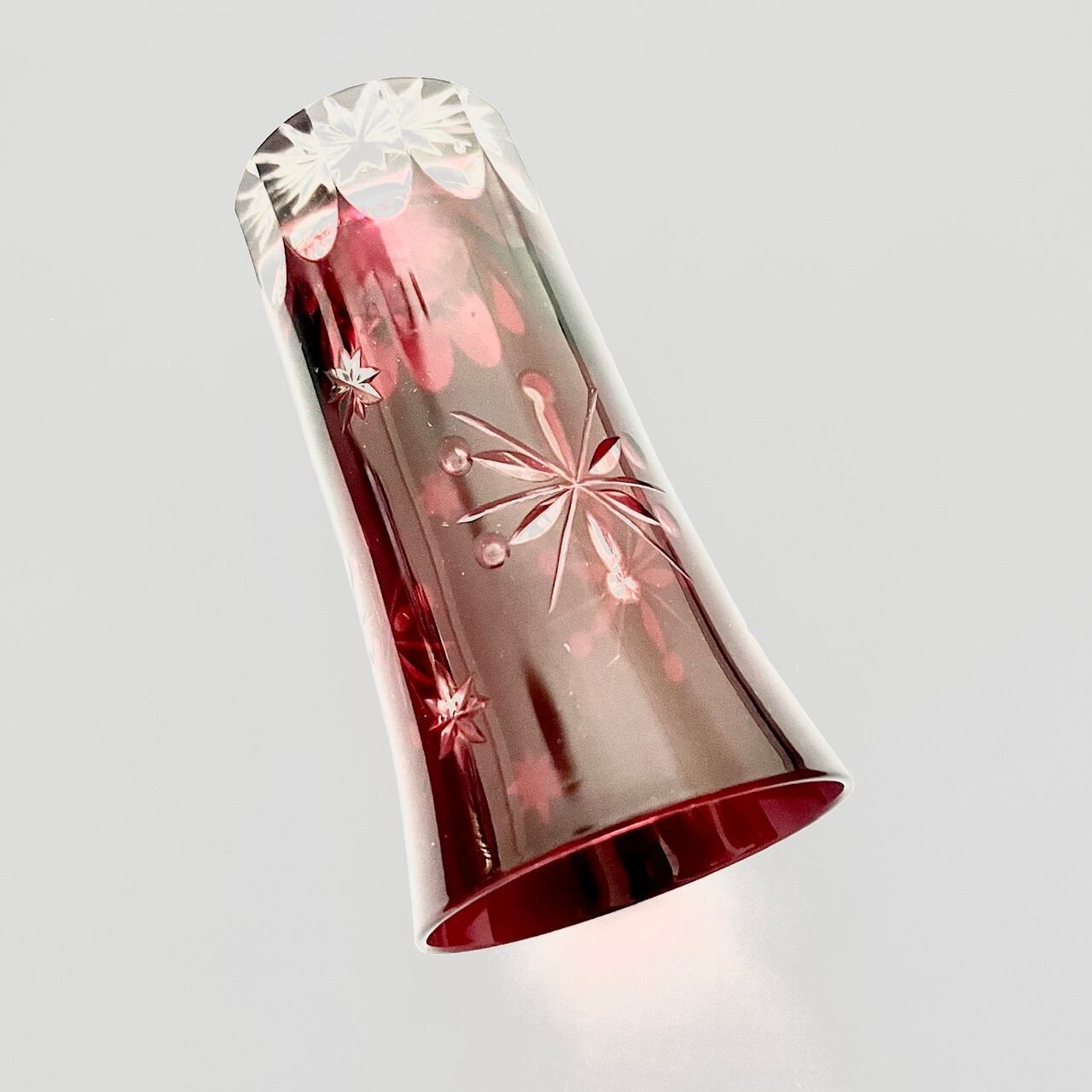 <単品バラ売り>切子 ショットグラス 赤 花火 雪の結晶
