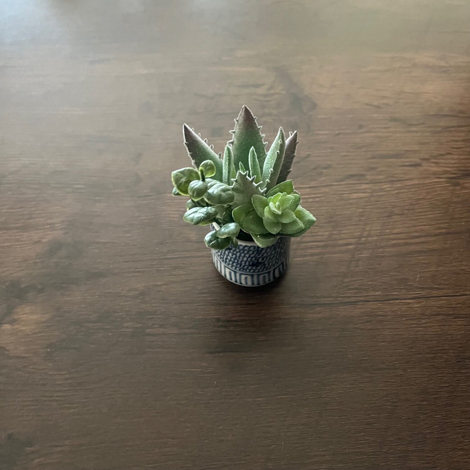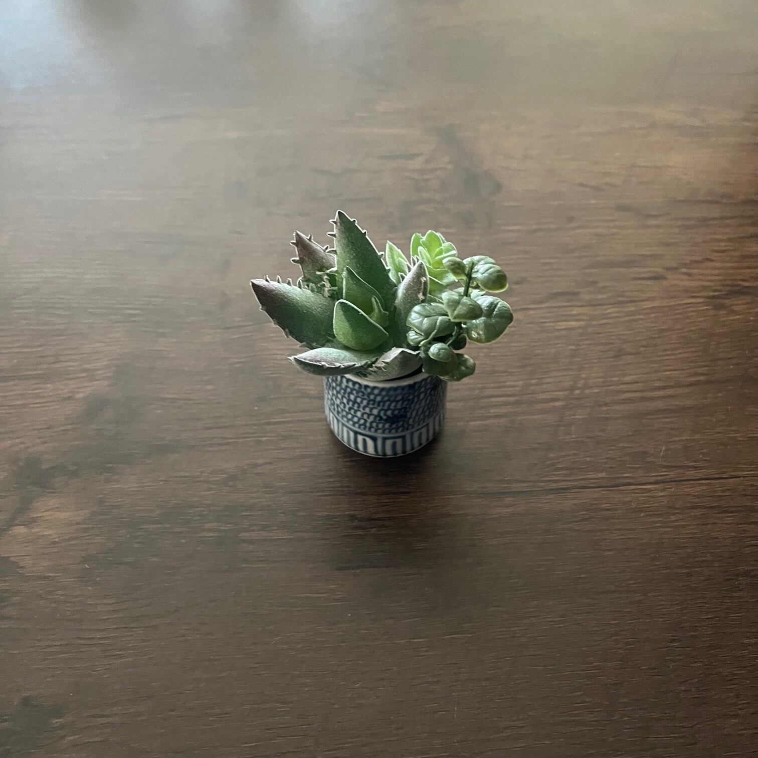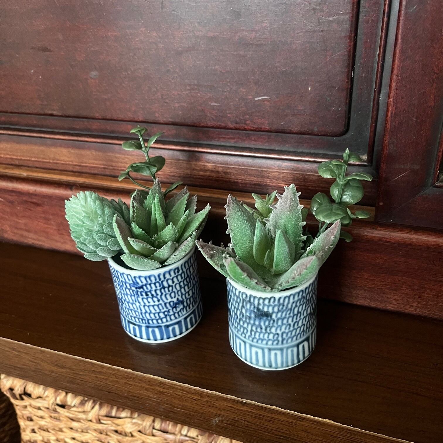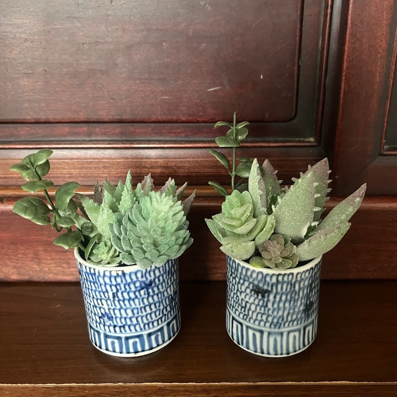造花 アレンジ アーティフィシャルフラワー<多肉植物> artificial flowers 古伊万里染付微塵花唐草文様猪口1客A