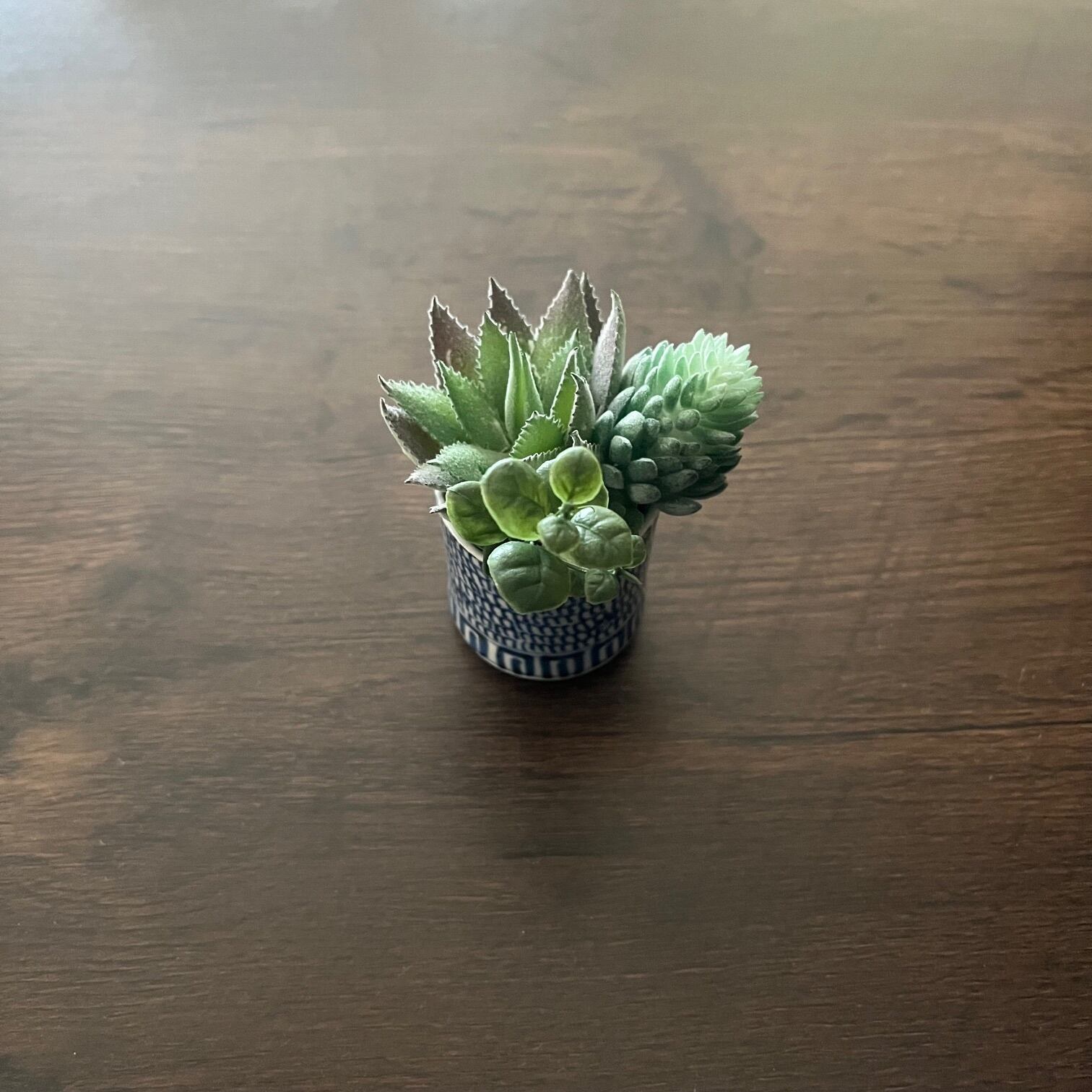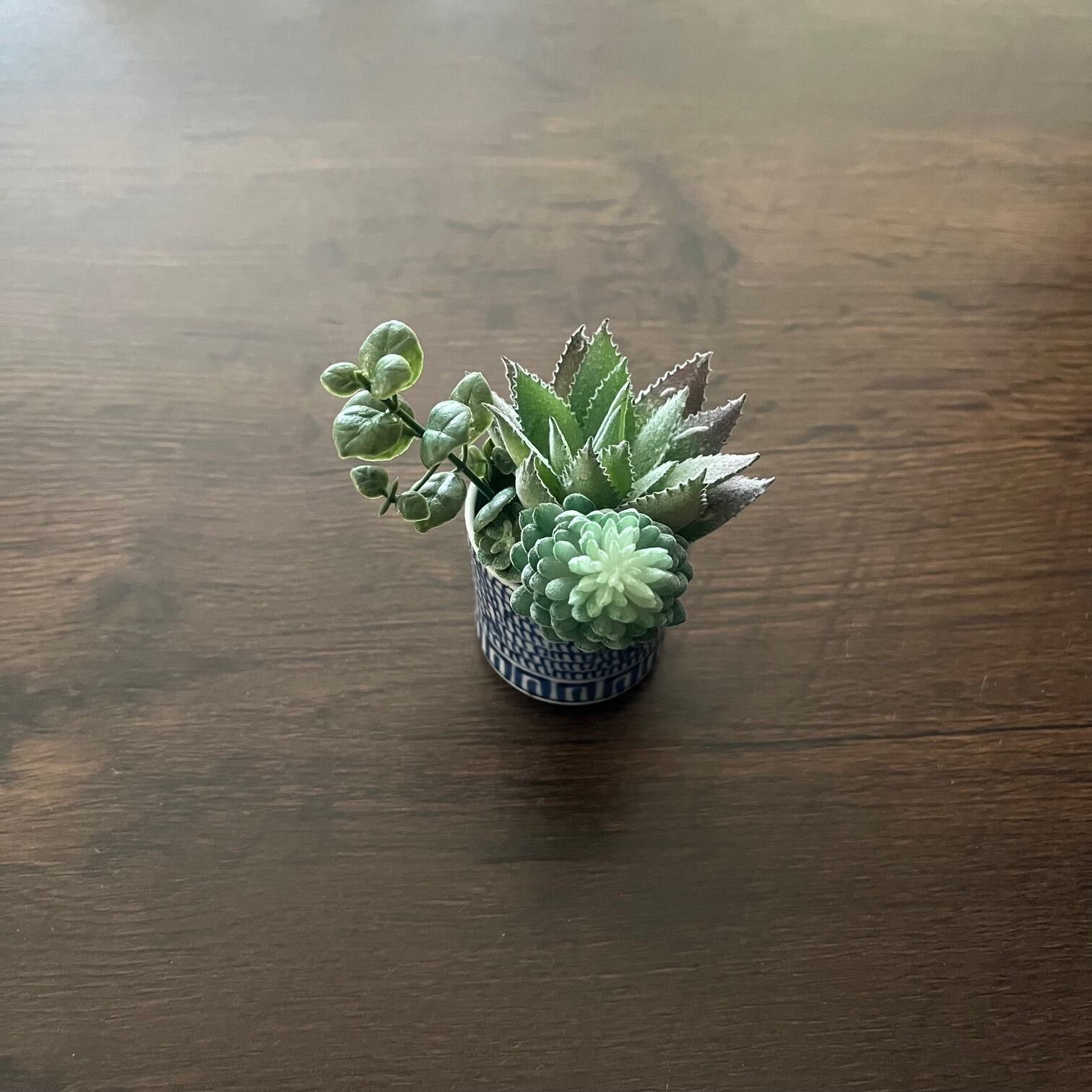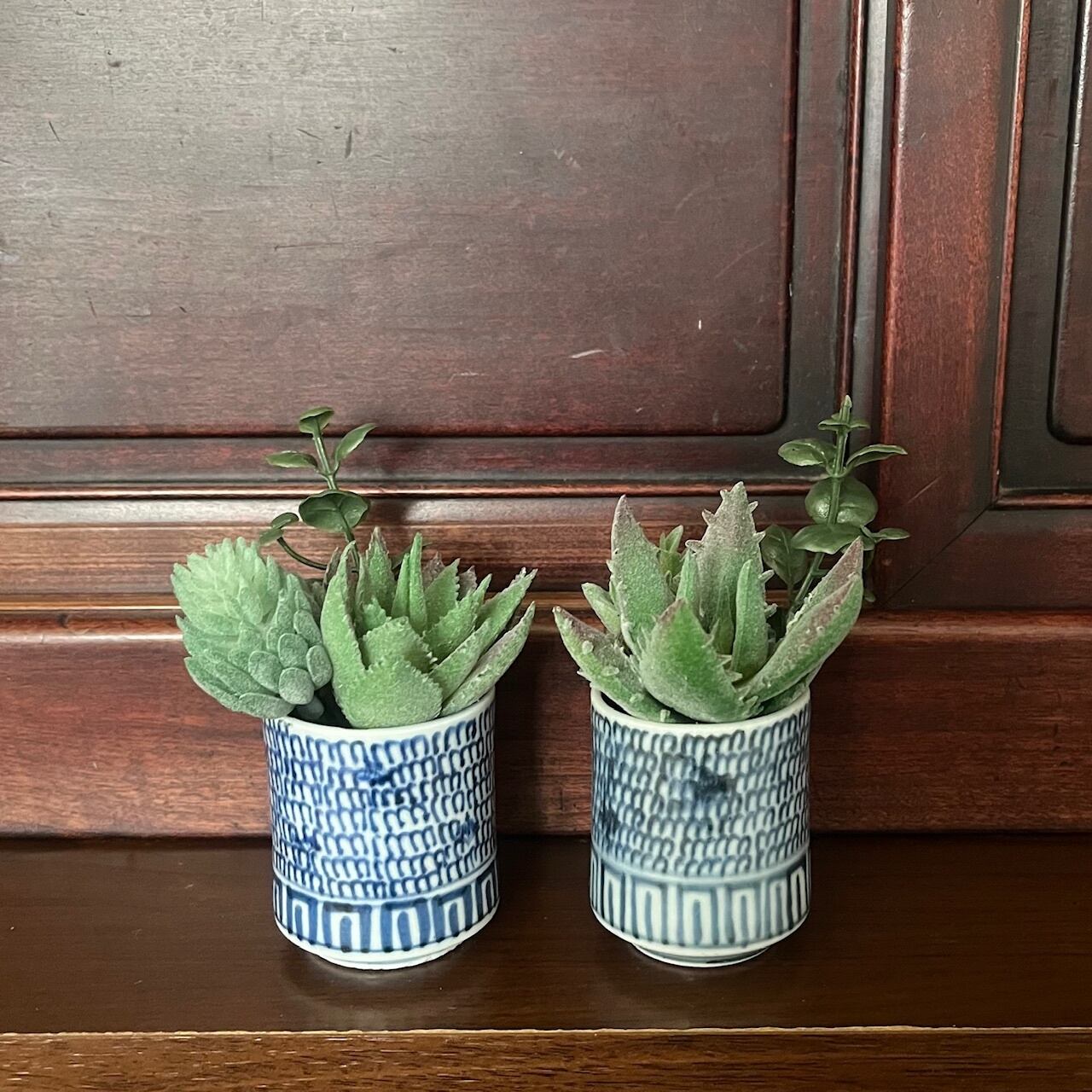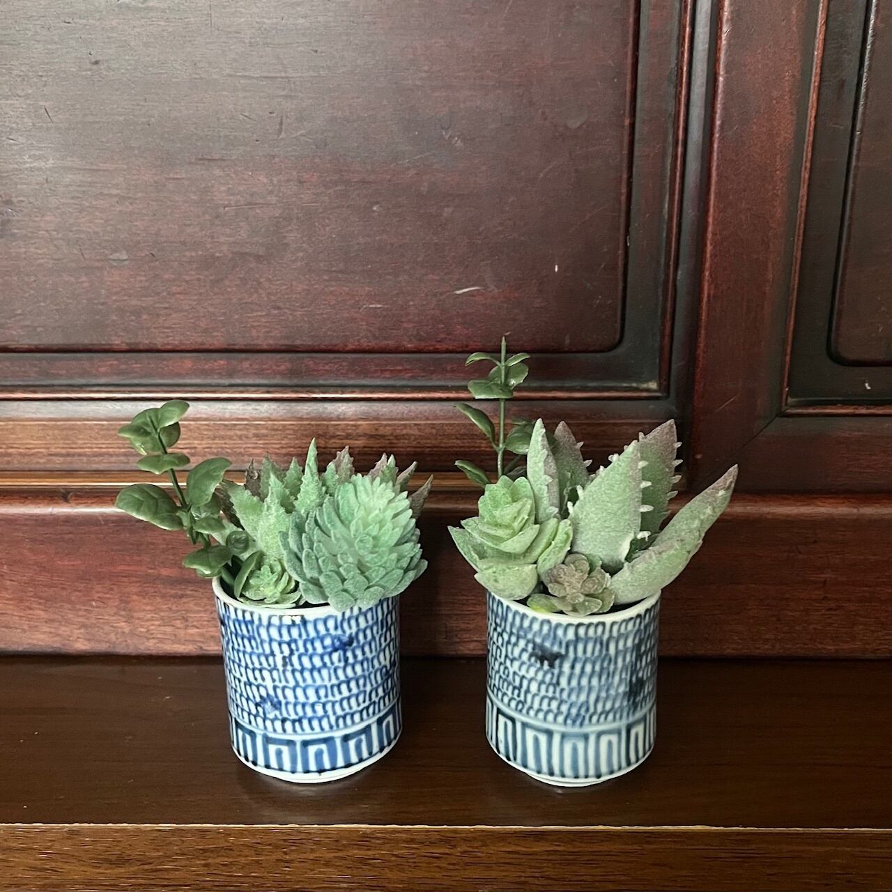 造花 アレンジ アーティフィシャルフラワー<多肉植物> artificial flowers 古伊万里染付微塵花唐草文様猪口1客B