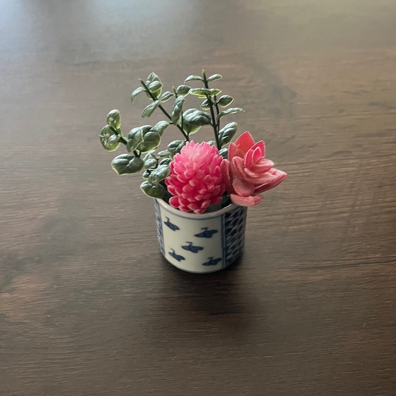 造花 アレンジ アーティフィシャルフラワー<多肉植物> artificial flowers 古伊万里染付折鶴波文様猪口A
