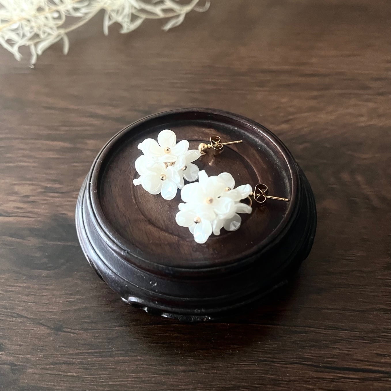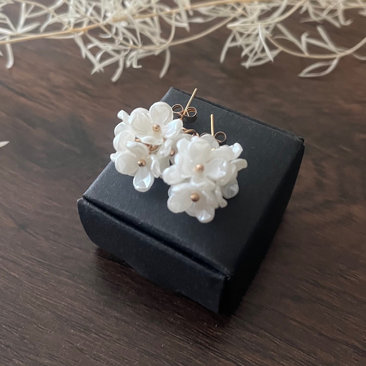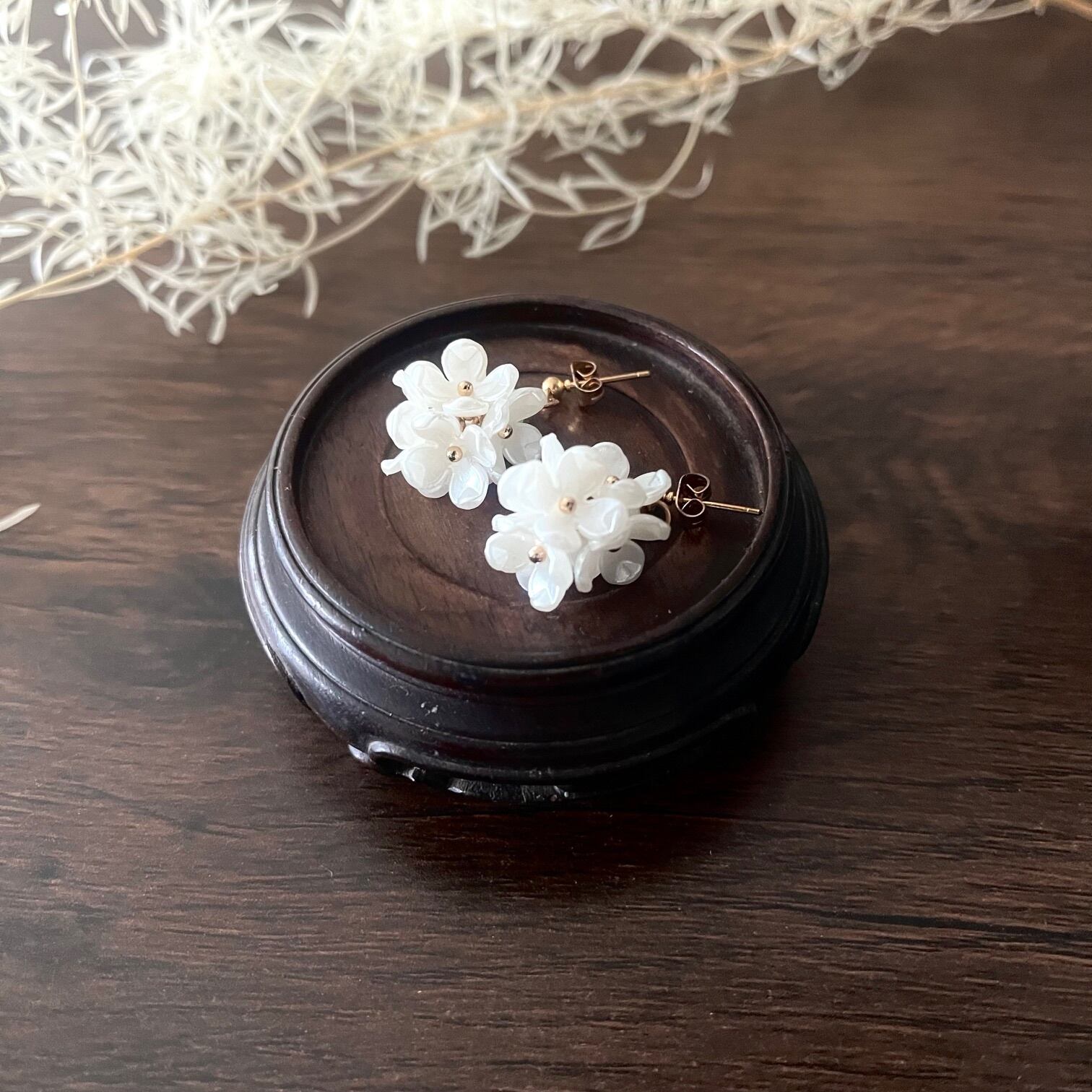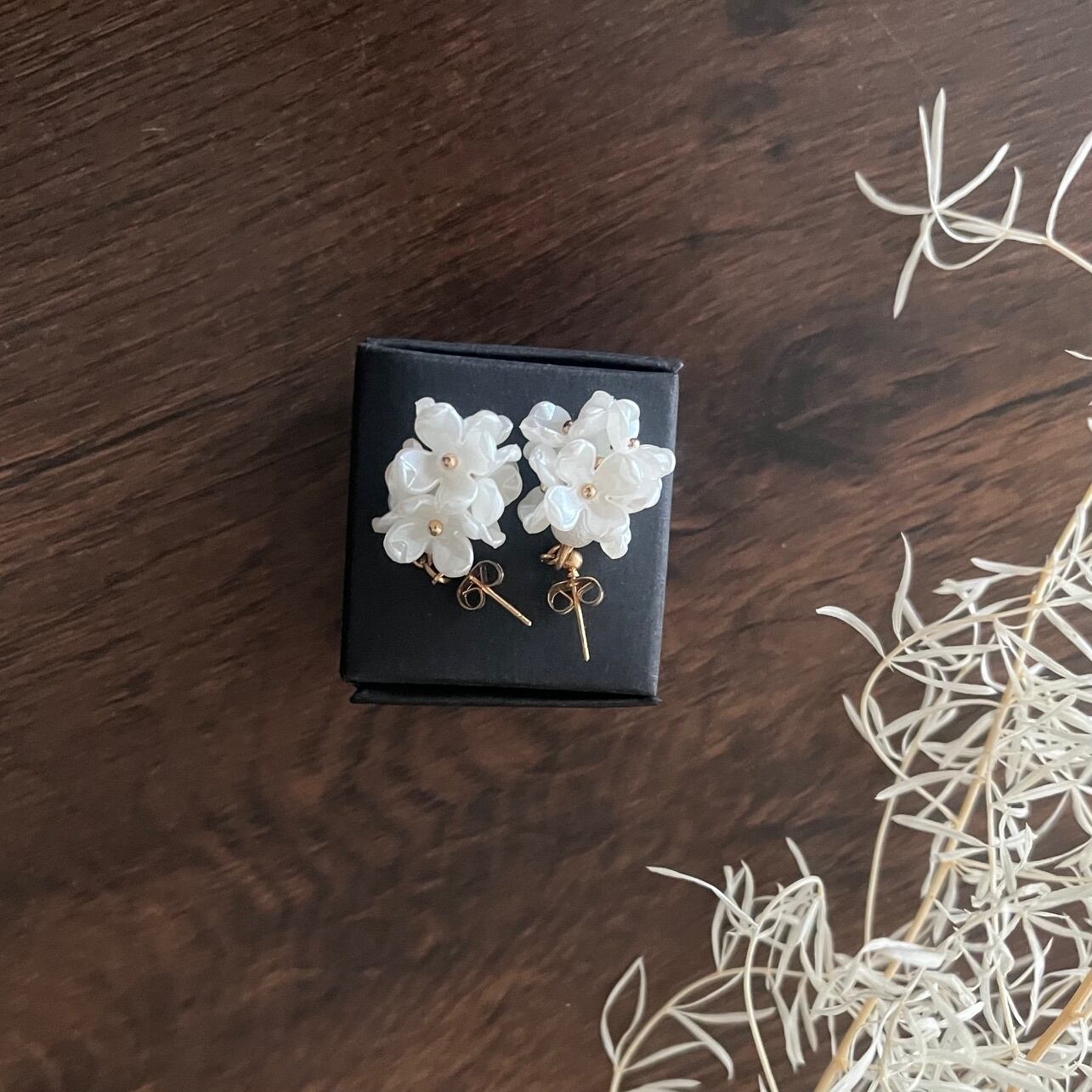 ホワイト フラワー 花びら4枚 イヤリング White Flower 妖艶 上品 凛とした印象