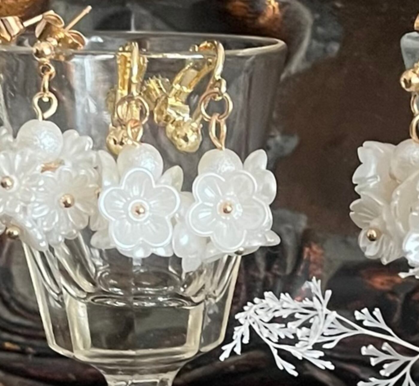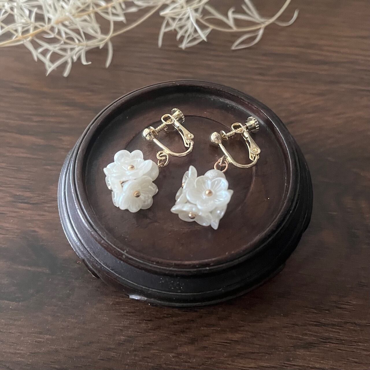小さな白い花を密集させることにより耳元でフラワーボンボンが可愛く揺れます♪