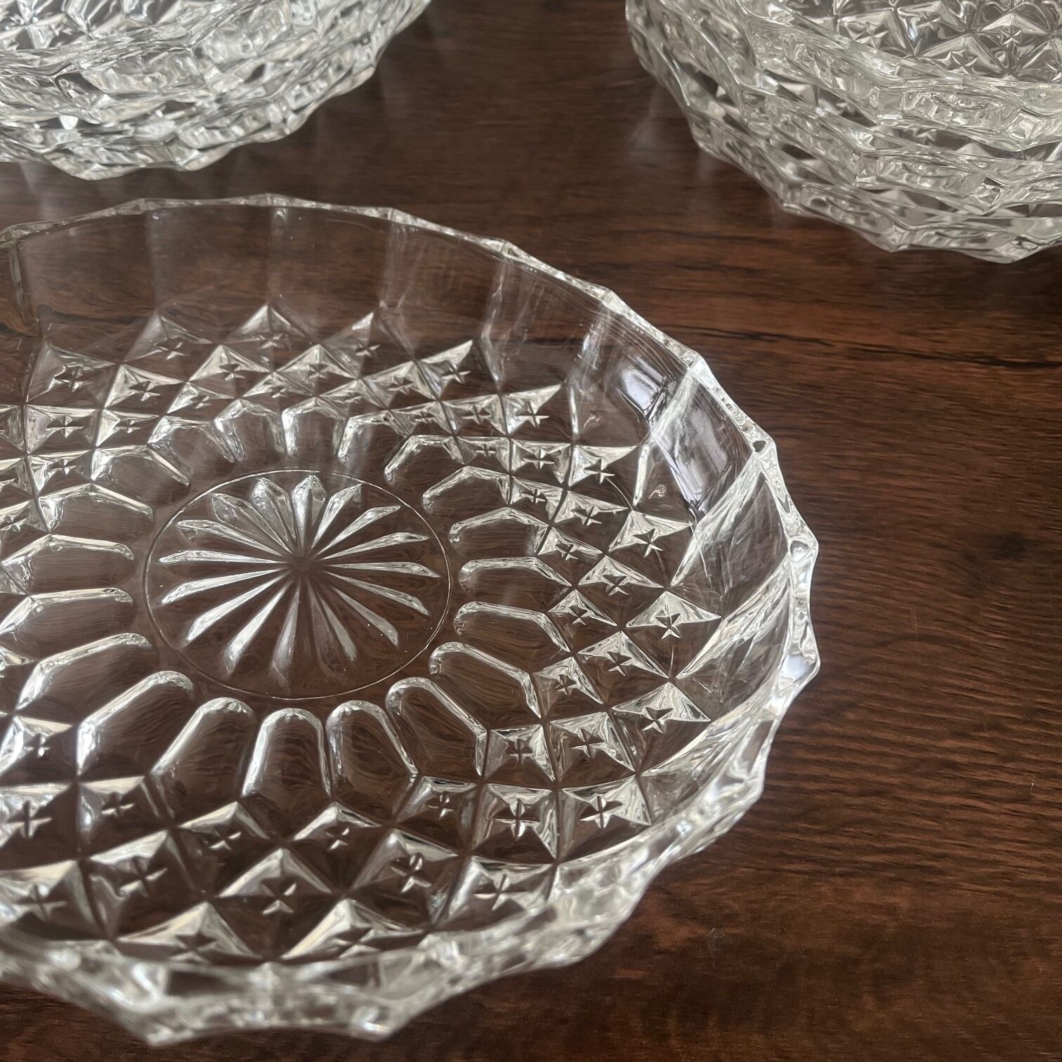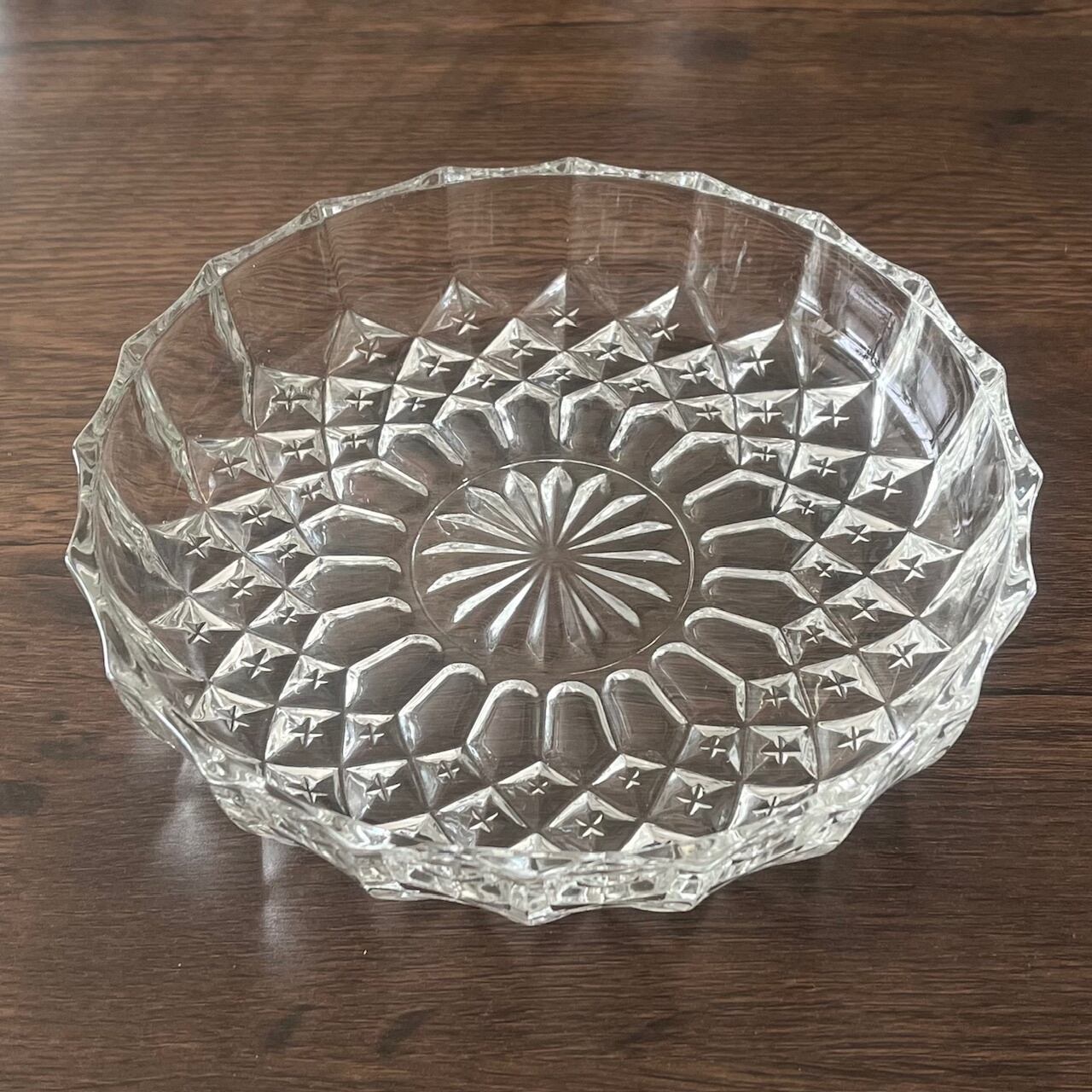 <丸皿・大/プレート>透明カットガラス 昭和 アンティーク レトロ バラ売り品