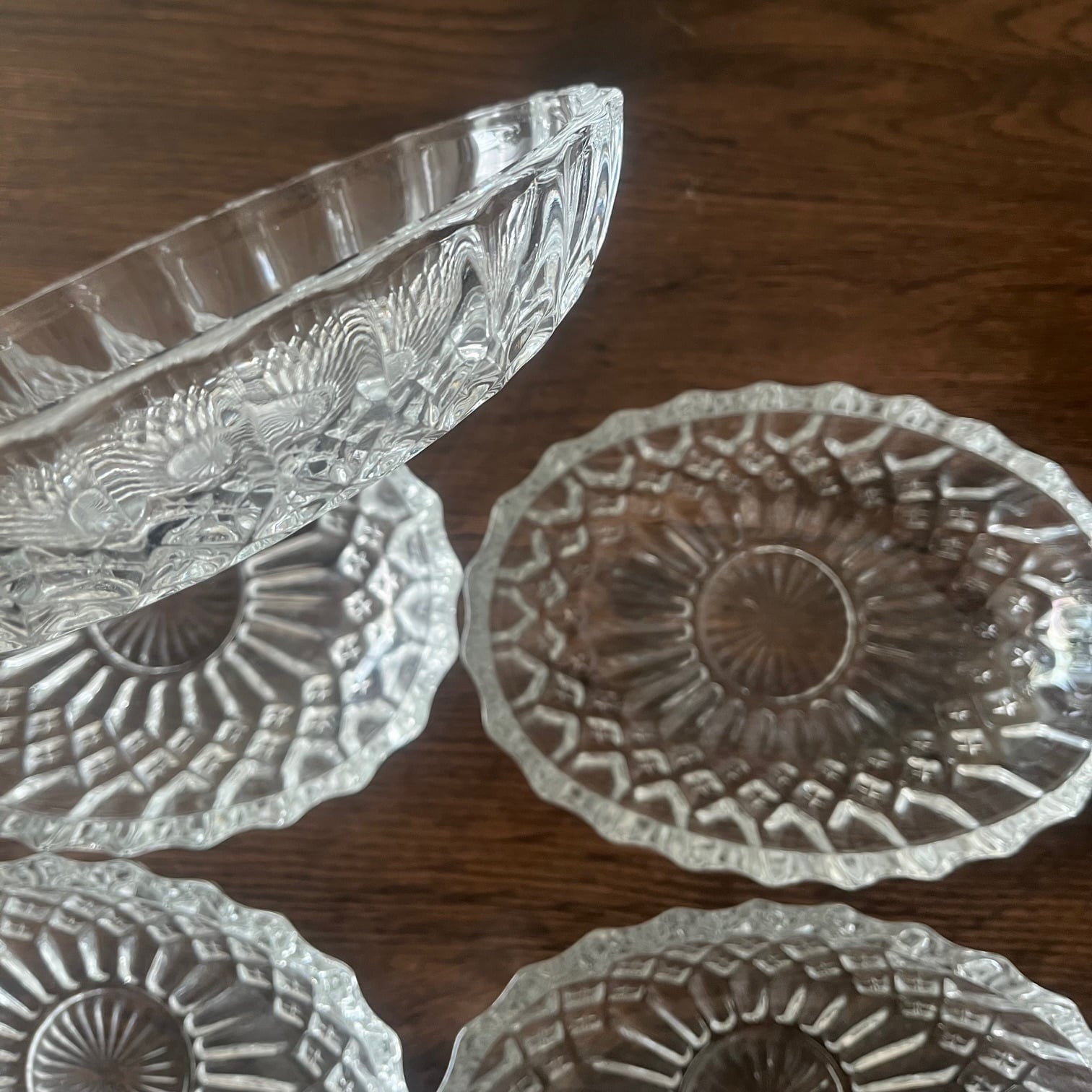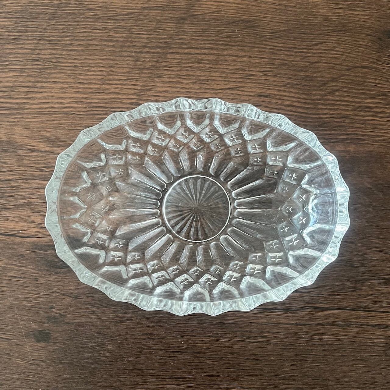 <楕円/プレート>透明カットガラス 昭和 アンティーク レトロ バラ売り品