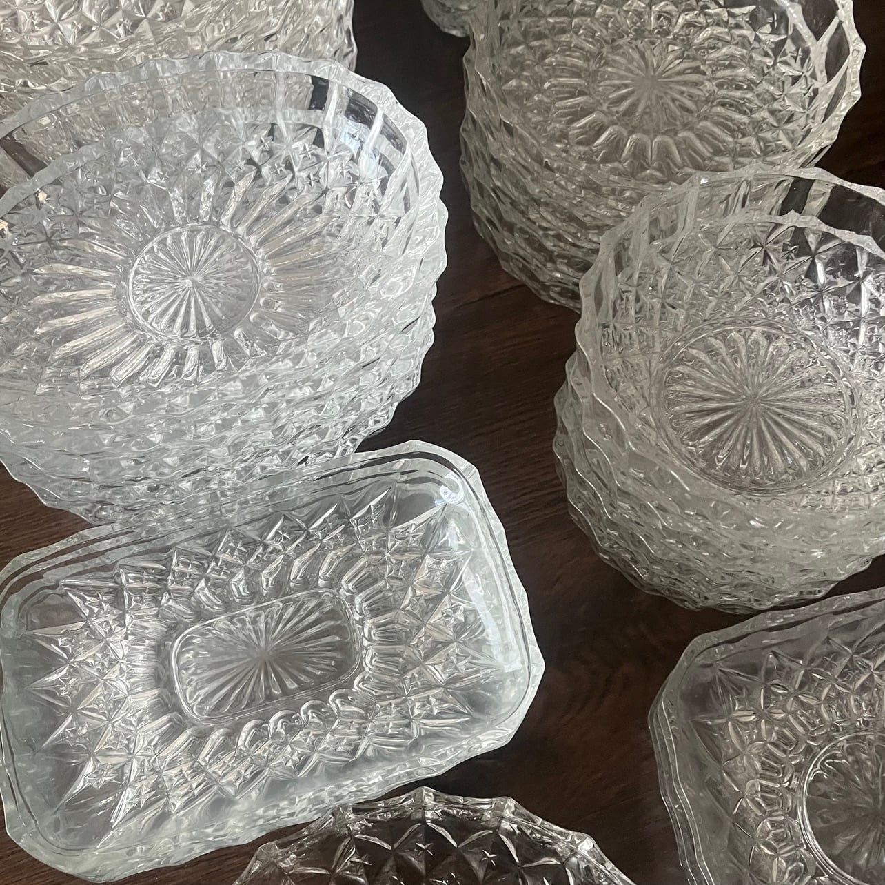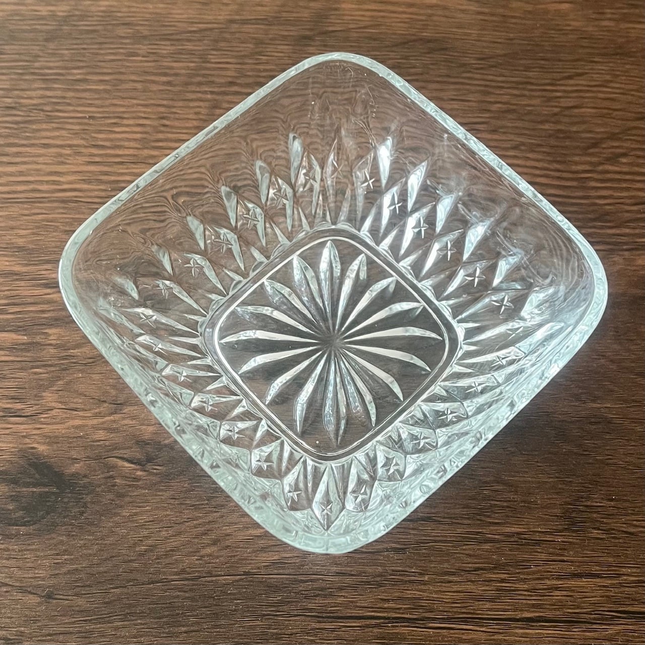 <四角・小鉢/カップ・ボウル>透明カットガラス 昭和 アンティーク レトロ バラ売り品