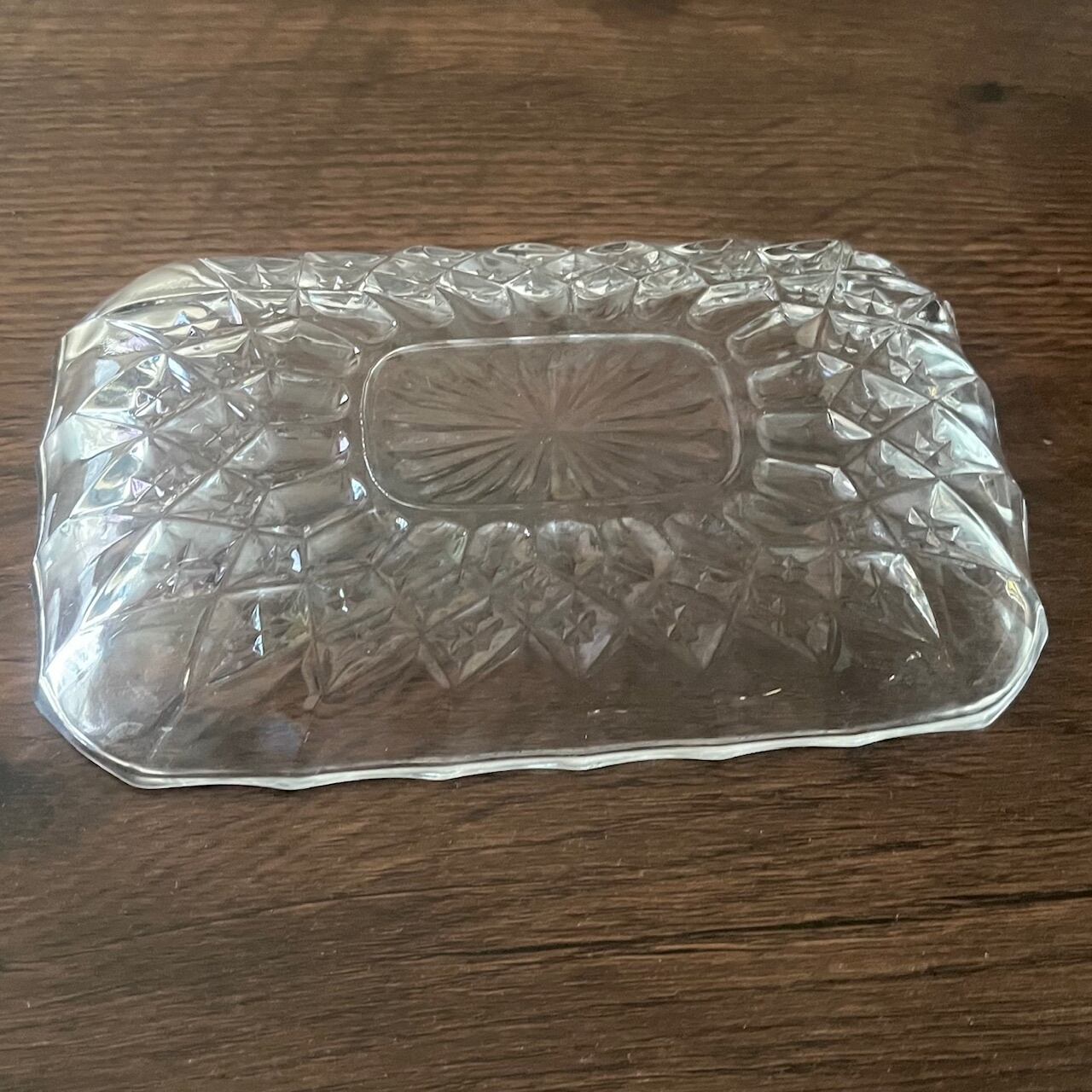 バラ売り品<角長皿/プレート>透明カットガラス 昭和 アンティーク レトロ
