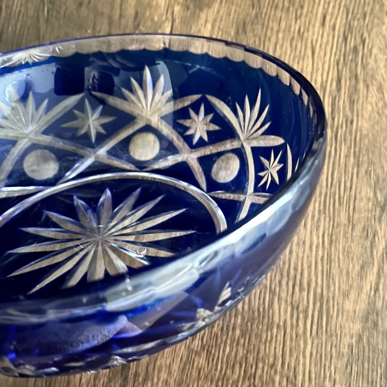 <訳あり>切子 青 大鉢 ボウル1個 色被せガラス ブルー